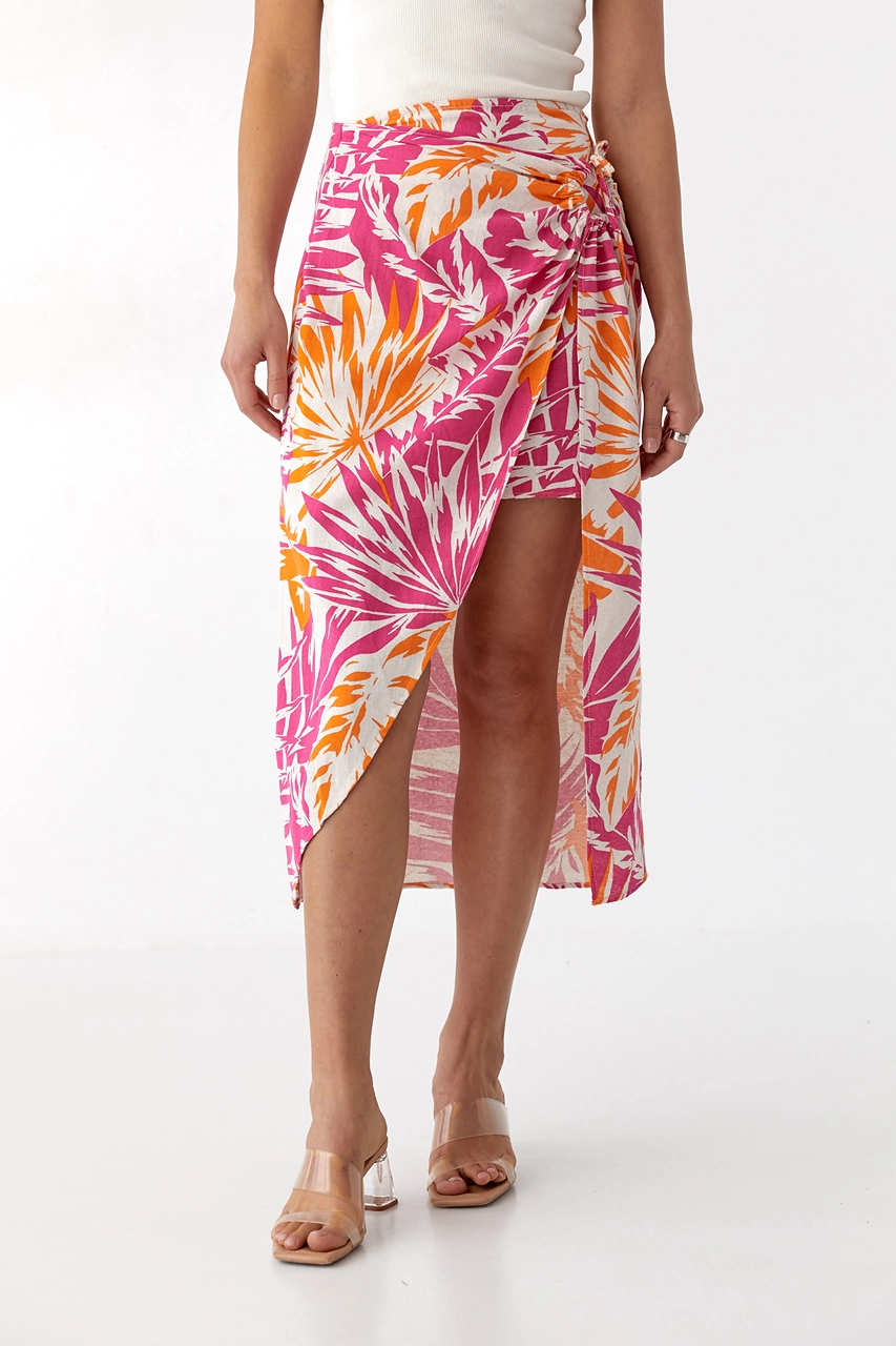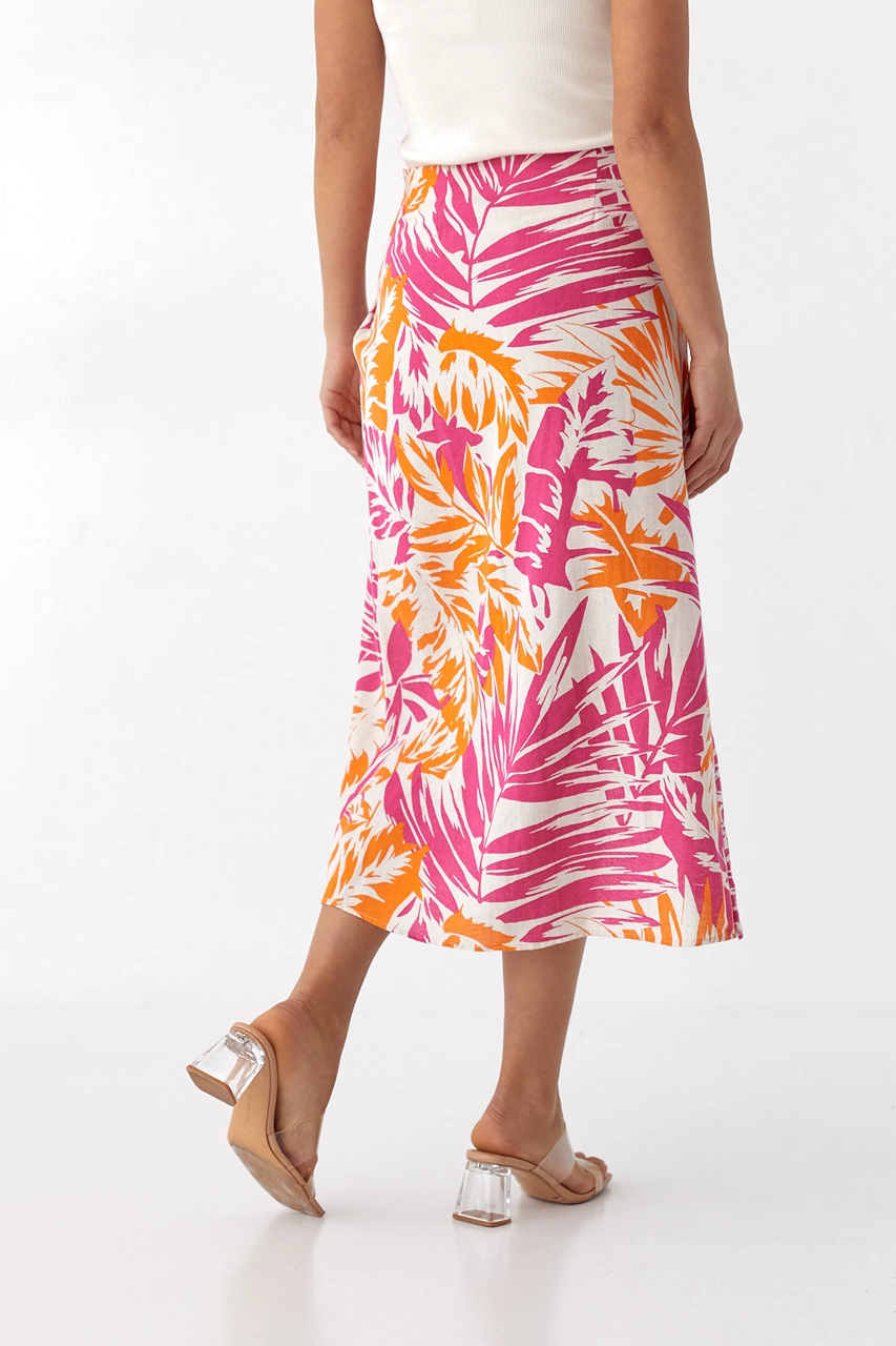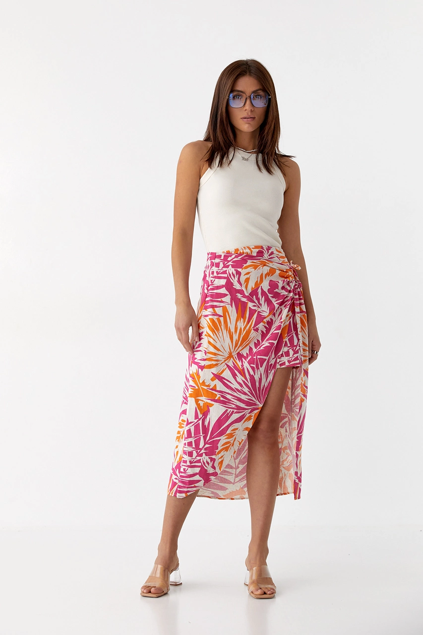 Эта красивая юбка с растительными узорами станет одной из твоих самых любимых этим летом. Модель длиной миди порадует тебя трендовым фасоном, легкой тканью и стильной расцветкой.
