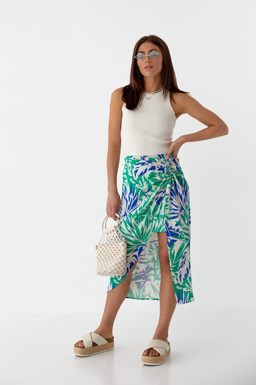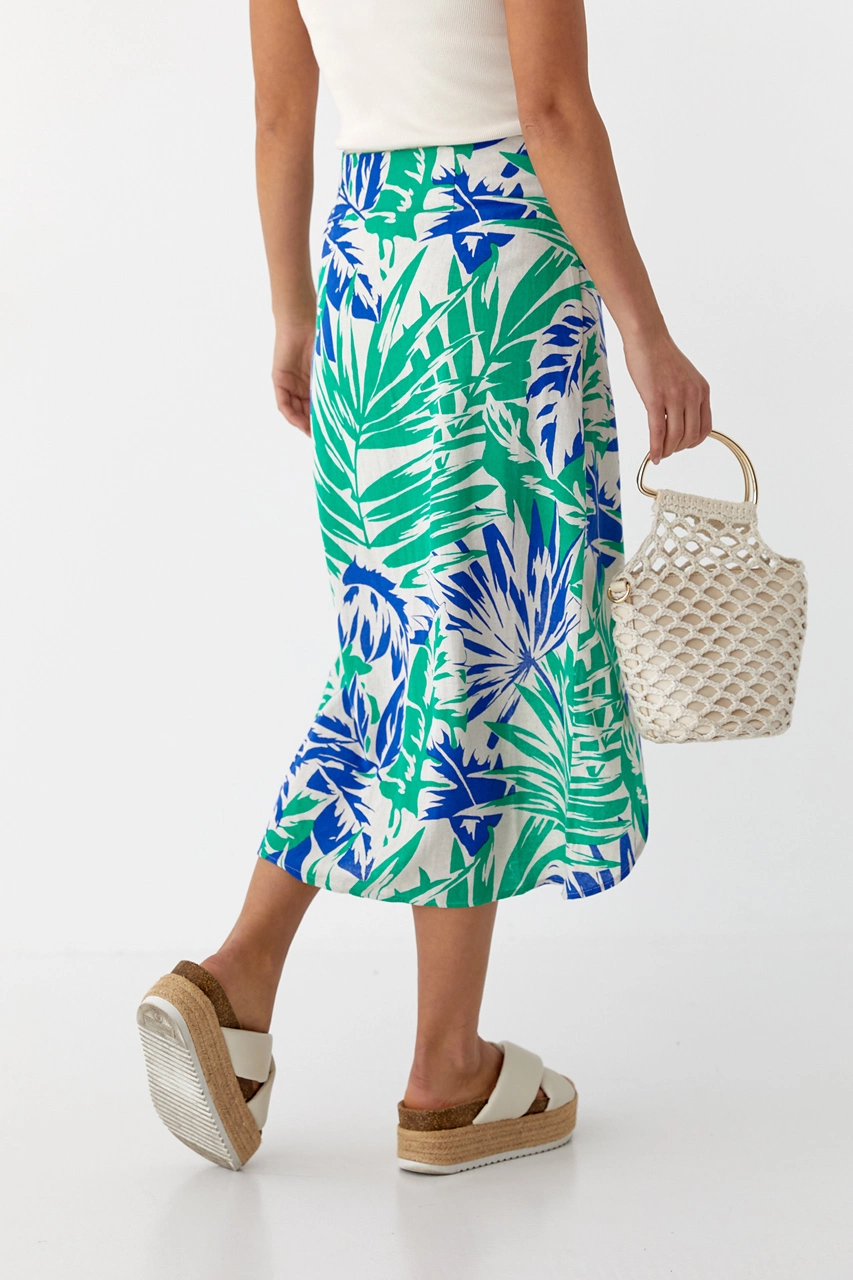 Эта красивая юбка с растительными узорами станет одной из твоих самых любимых этим летом. Модель длиной миди порадует тебя трендовым фасоном, легкой тканью и стильной расцветкой.