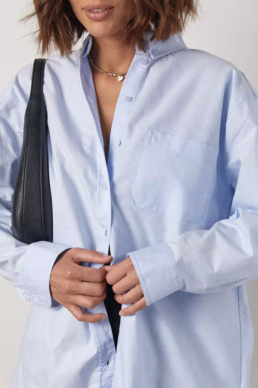Льняная женская рубашка в стиле оверсайз - голубой цвет, S/M (есть размеры)