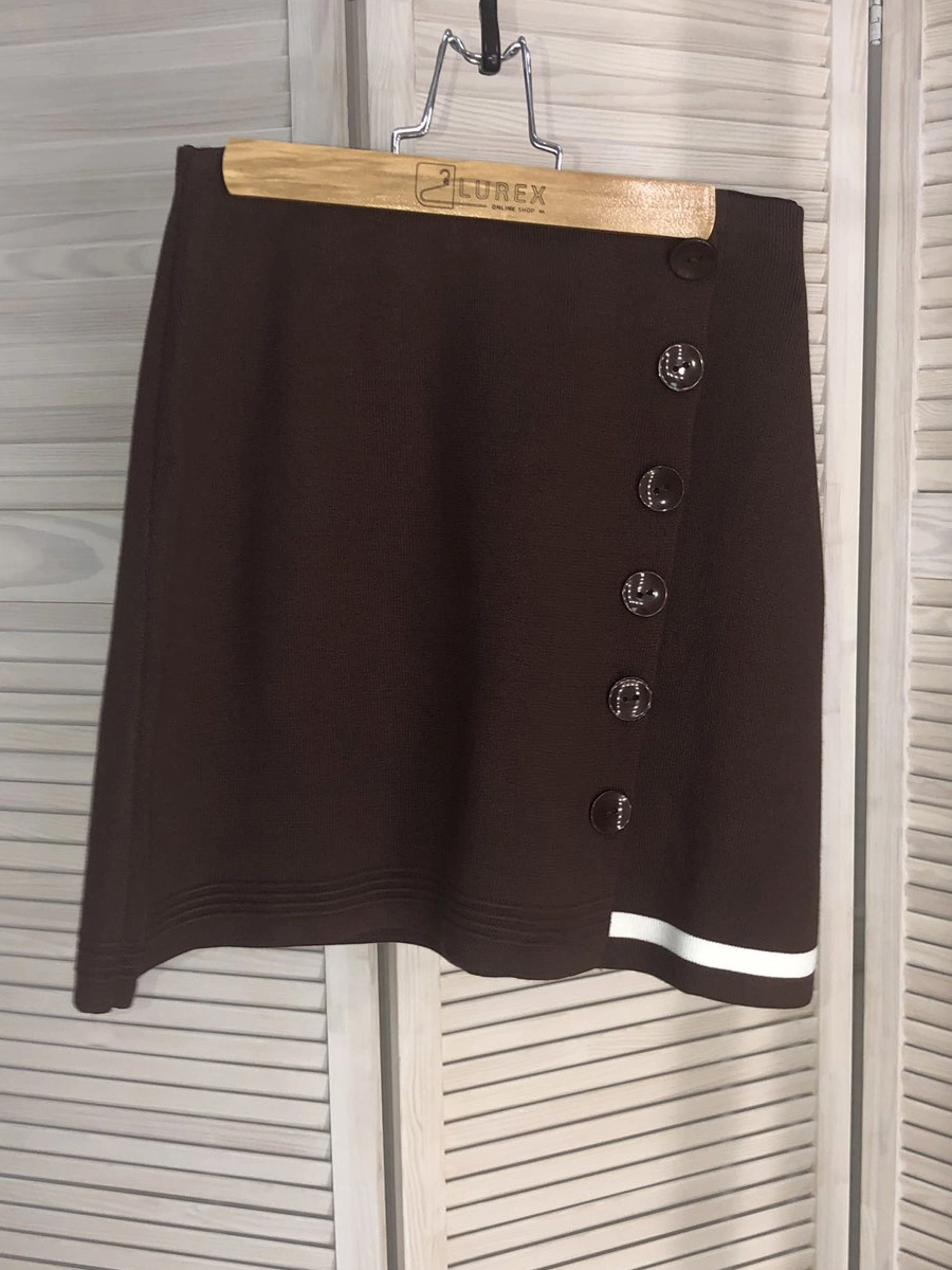 Супер-модная ассиметричная мини-юбка на пуговицах с широкой