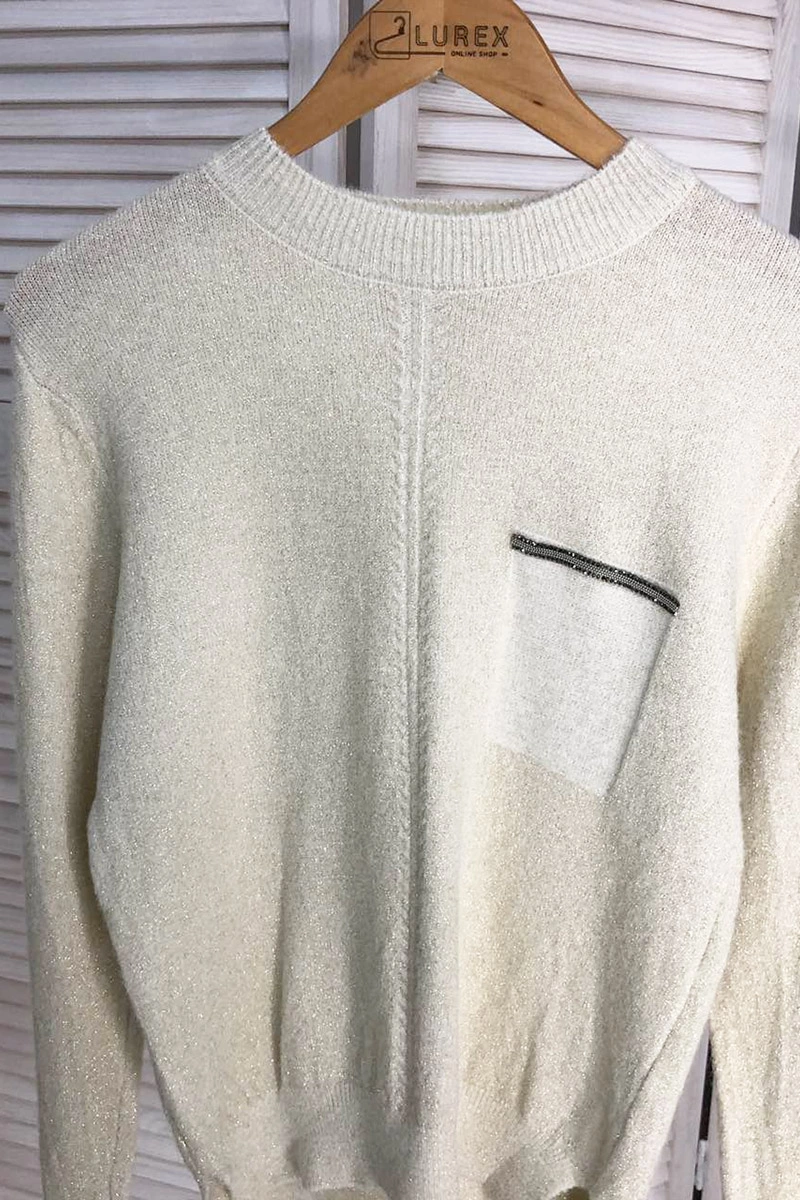 LUREX Джемпер люрекс с карманом обманкой - молочный цвет, S