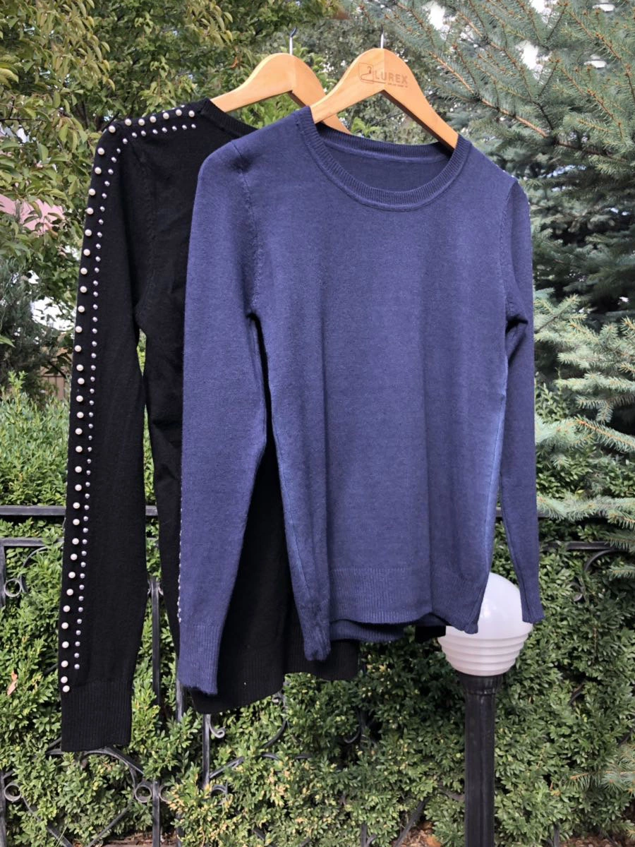 Тонкий джемпер с бусинами в виде лампас - стильный наряд на каждый