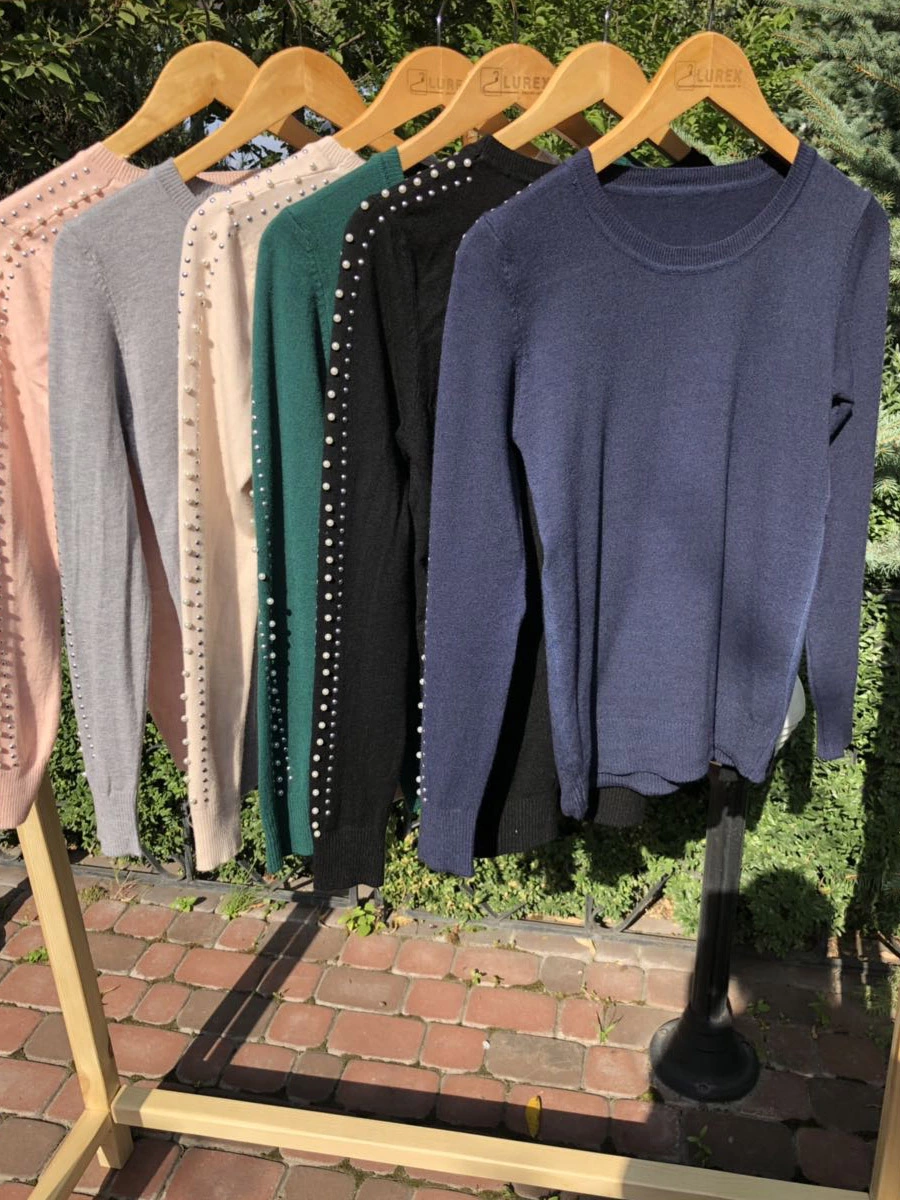 Тонкий джемпер с бусинами в виде лампас - стильный наряд на каждый