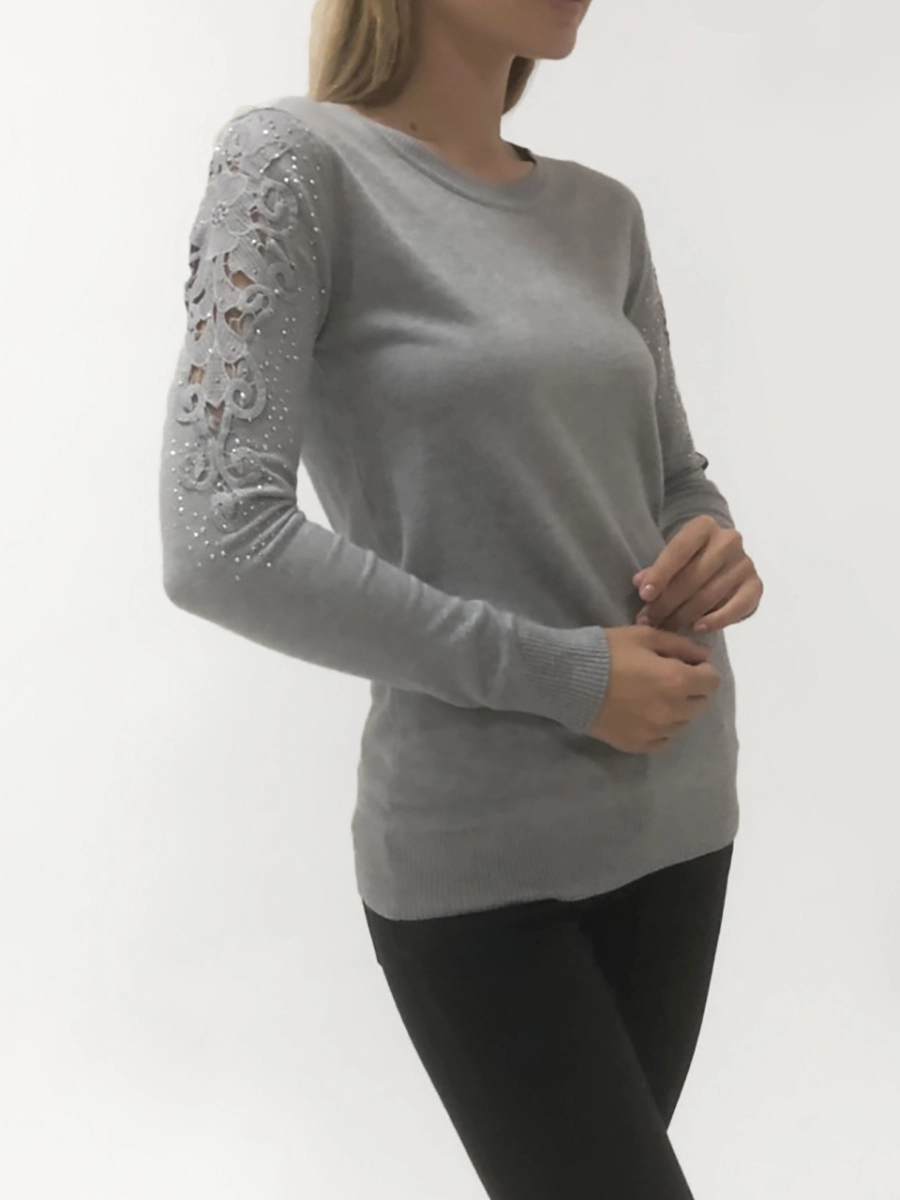 Стильному женскому джемперу с каплевидным изящным кружевом на