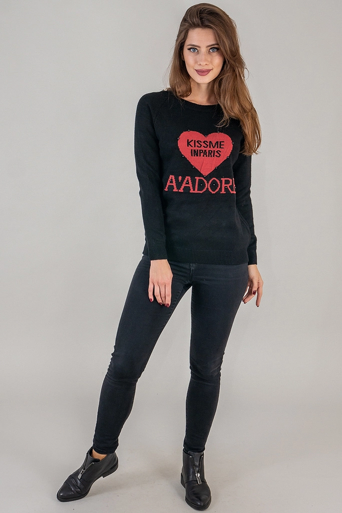 LUREX Реглан с принтом сердце KISS ME - черный цвет, L