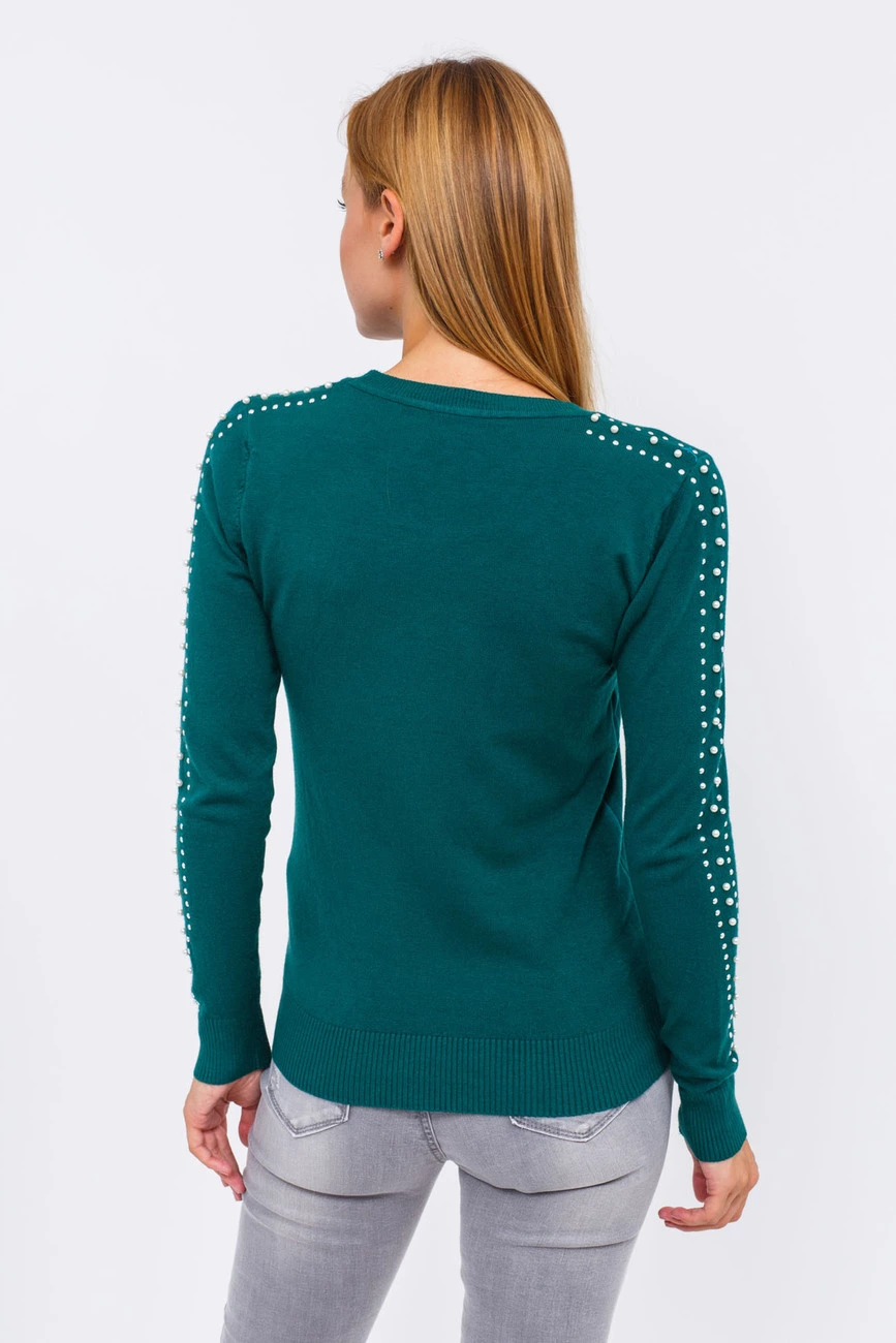 Тонкий джемпер с бусинами в виде лампас - стильный наряд на каждый