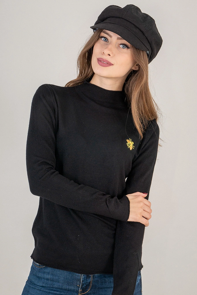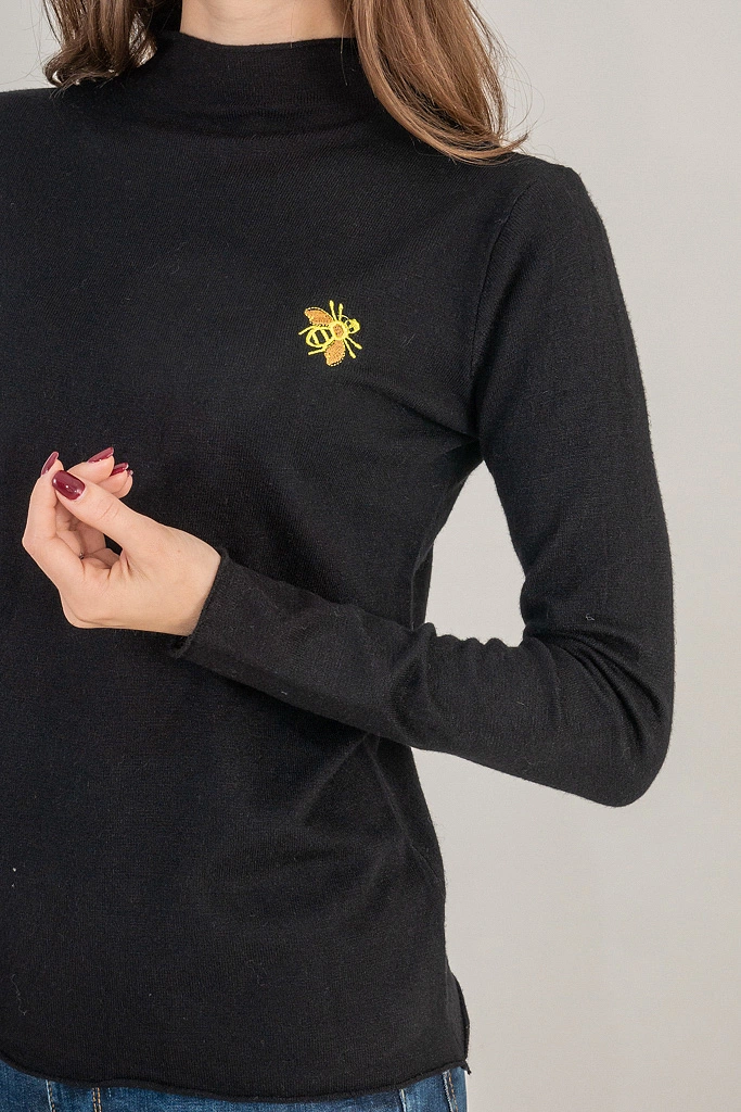 LUREX Гольф с воротником и нашивкой пчелкой - черный цвет, S