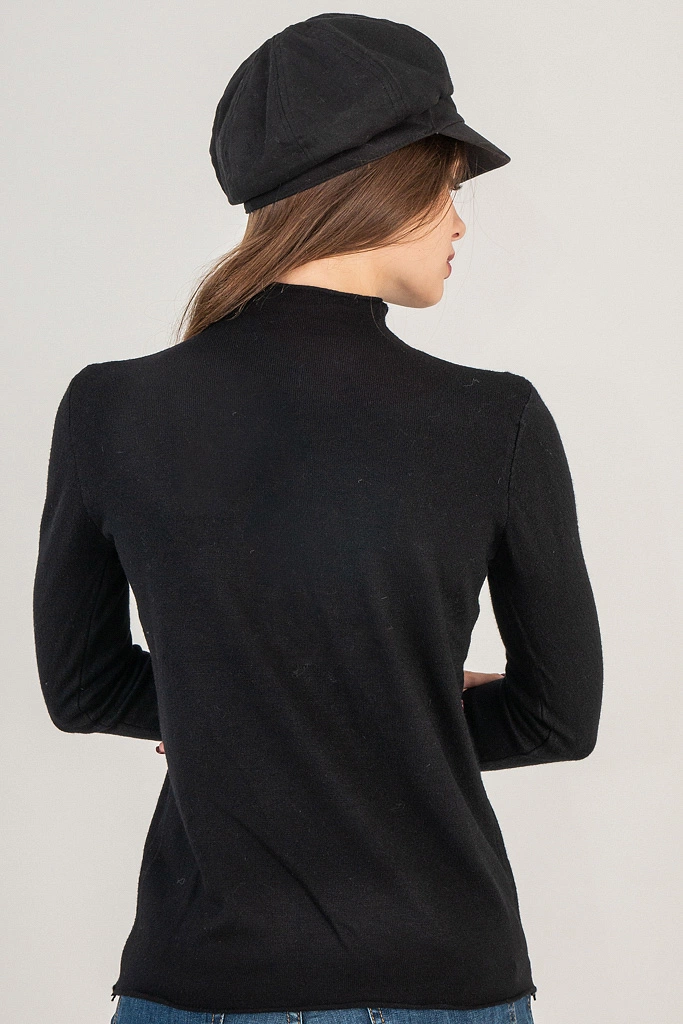 Базовый элемент женского осеннего гардероба – повседневный гольф из мягкой натуральной ткани. В этой модели цельнокроеный воротник стоечка.