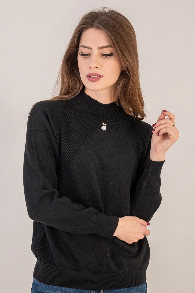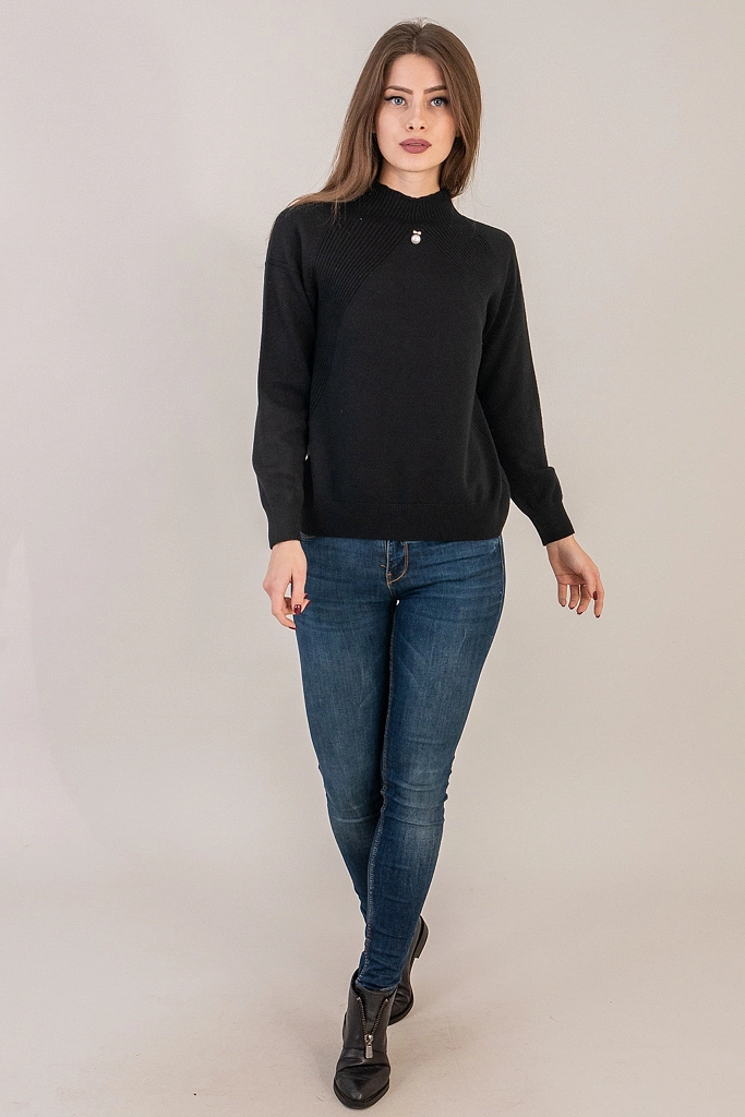 LUREX Гольф с вставками вязки лапша - черный цвет, L