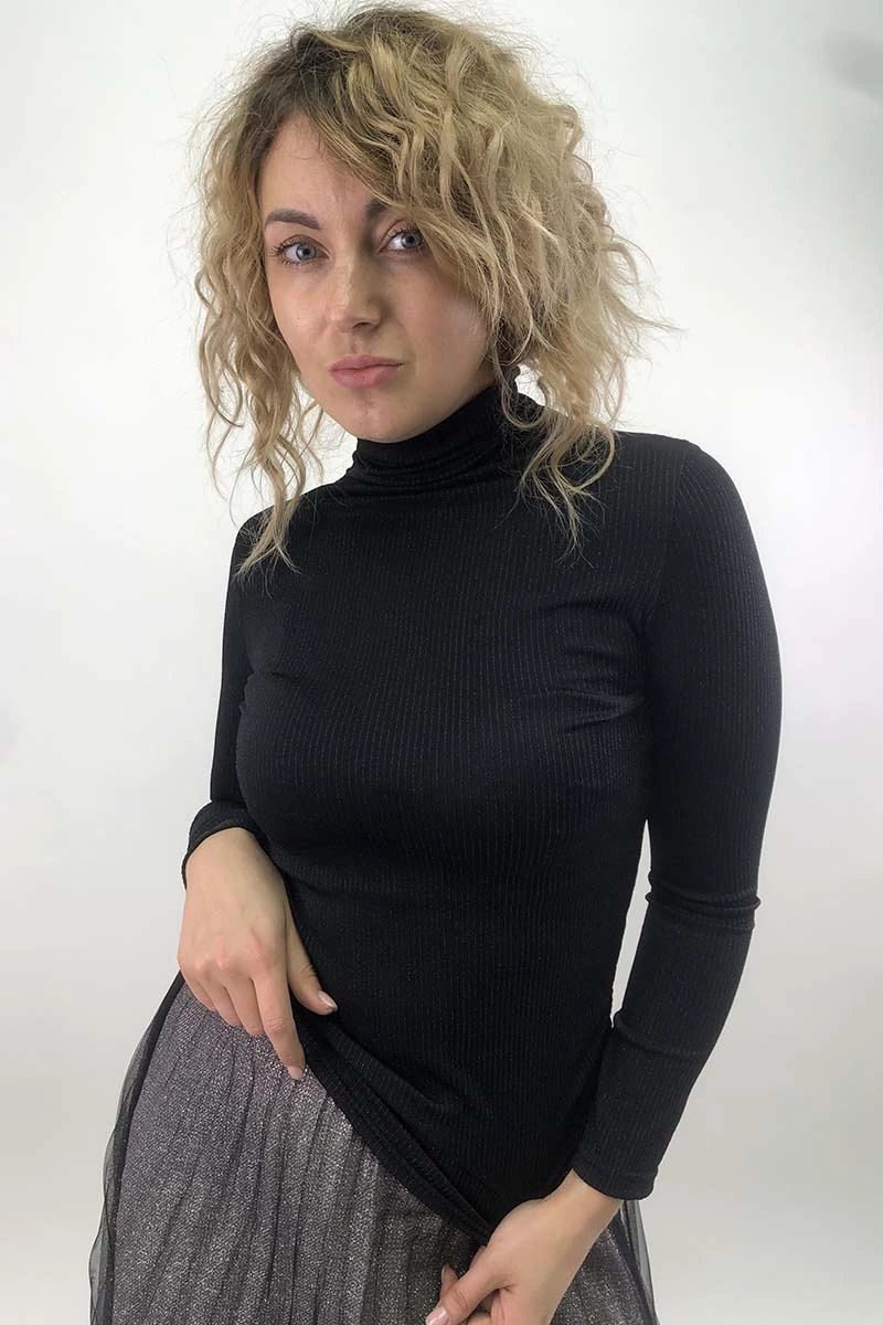 Элегантный женский гольф из тонкого трикотажа в рубчик имеет