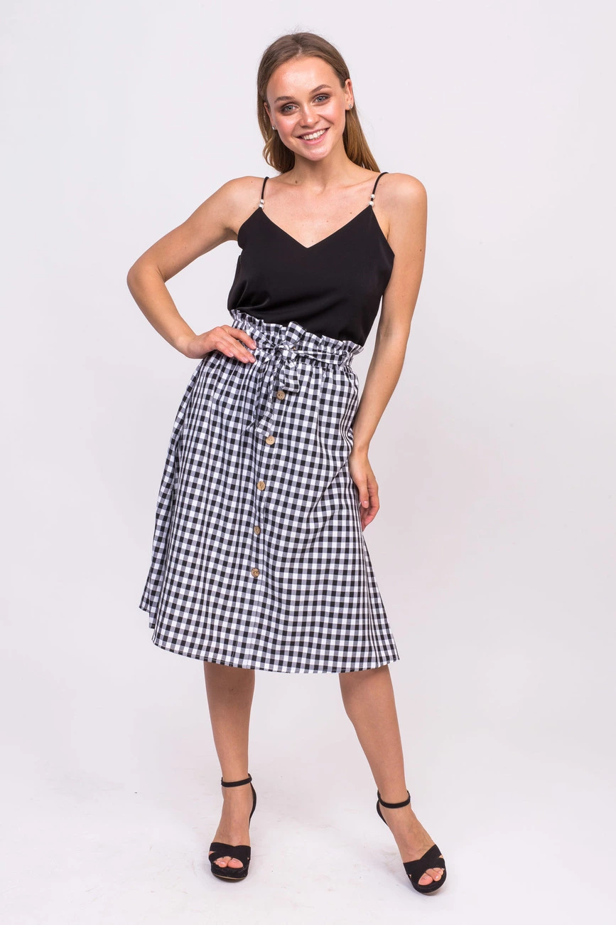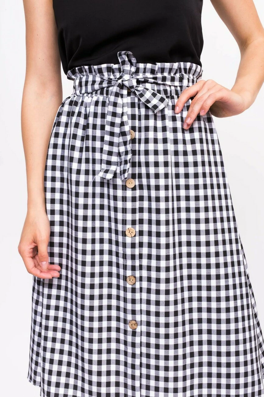 LUREX Клетчатая юбка с пояском - черный цвет, S