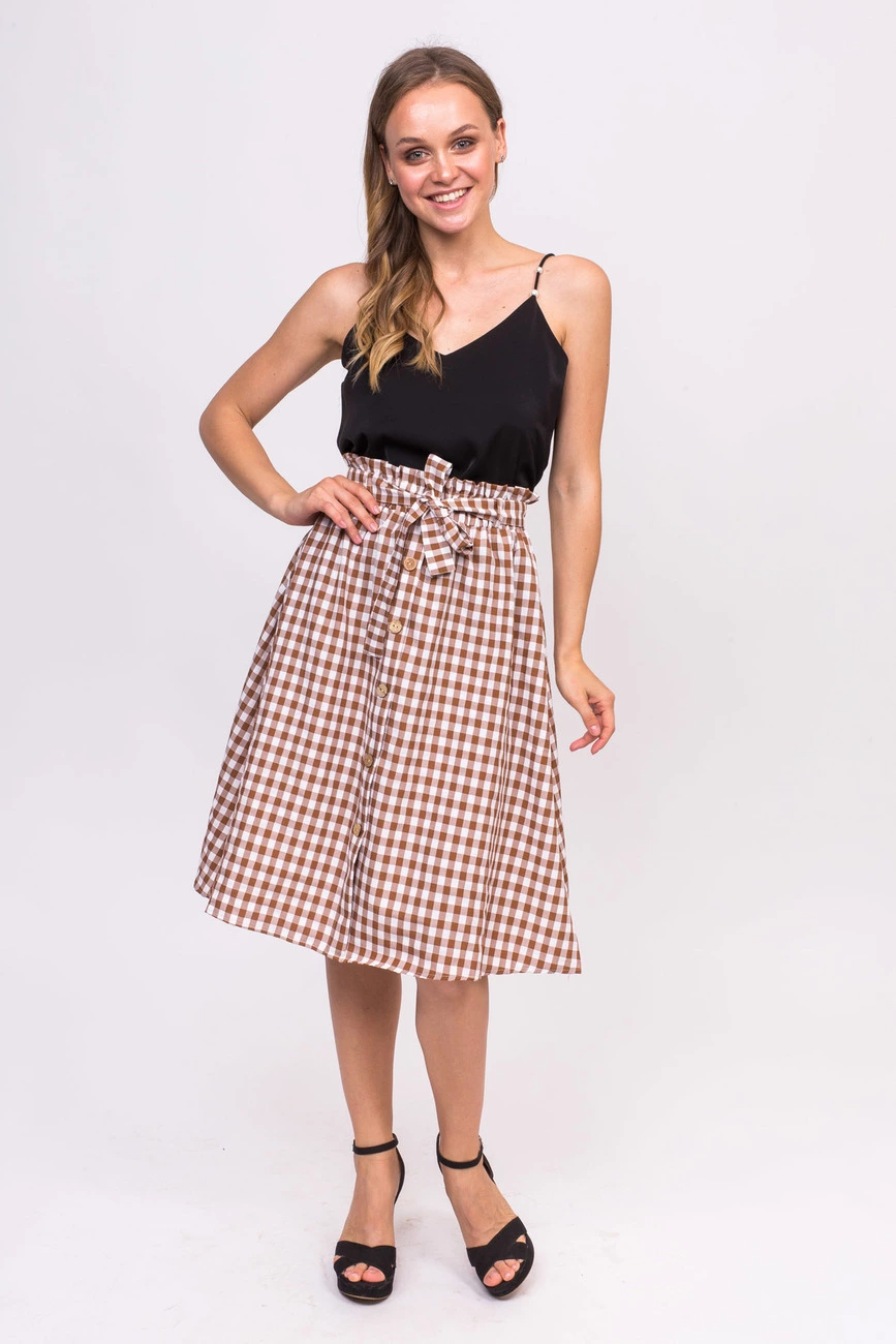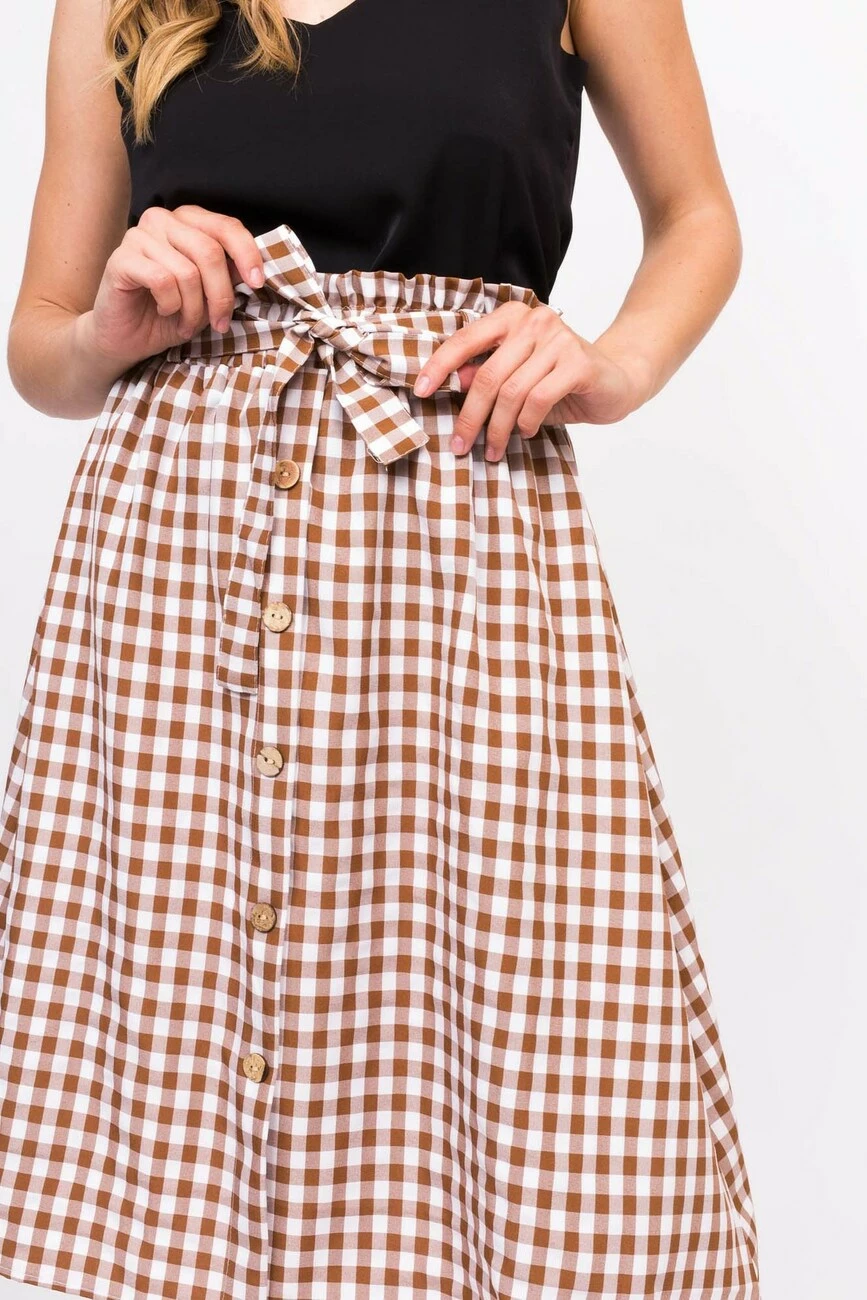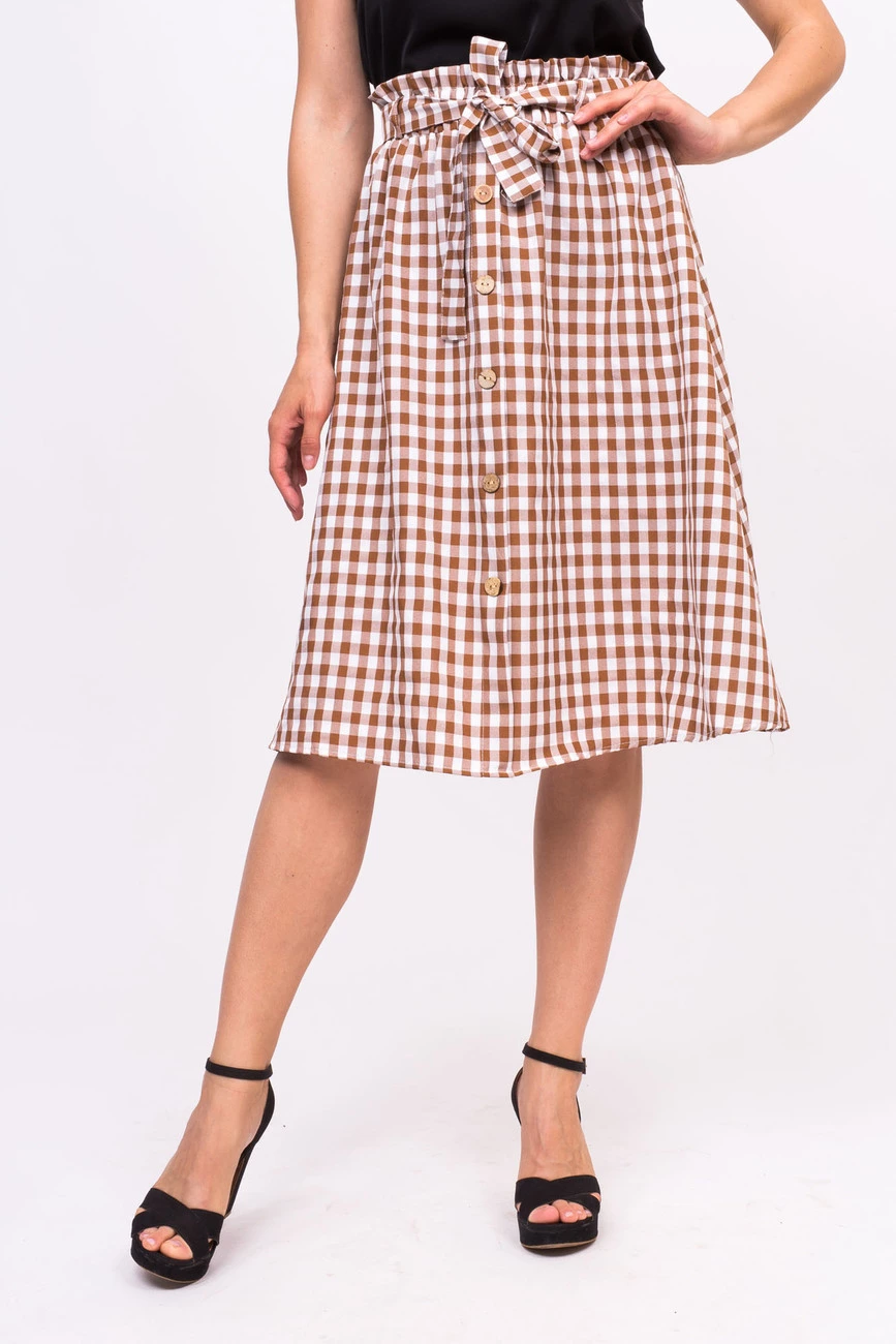 LUREX Клетчатая юбка с пояском - коричневый цвет, S
