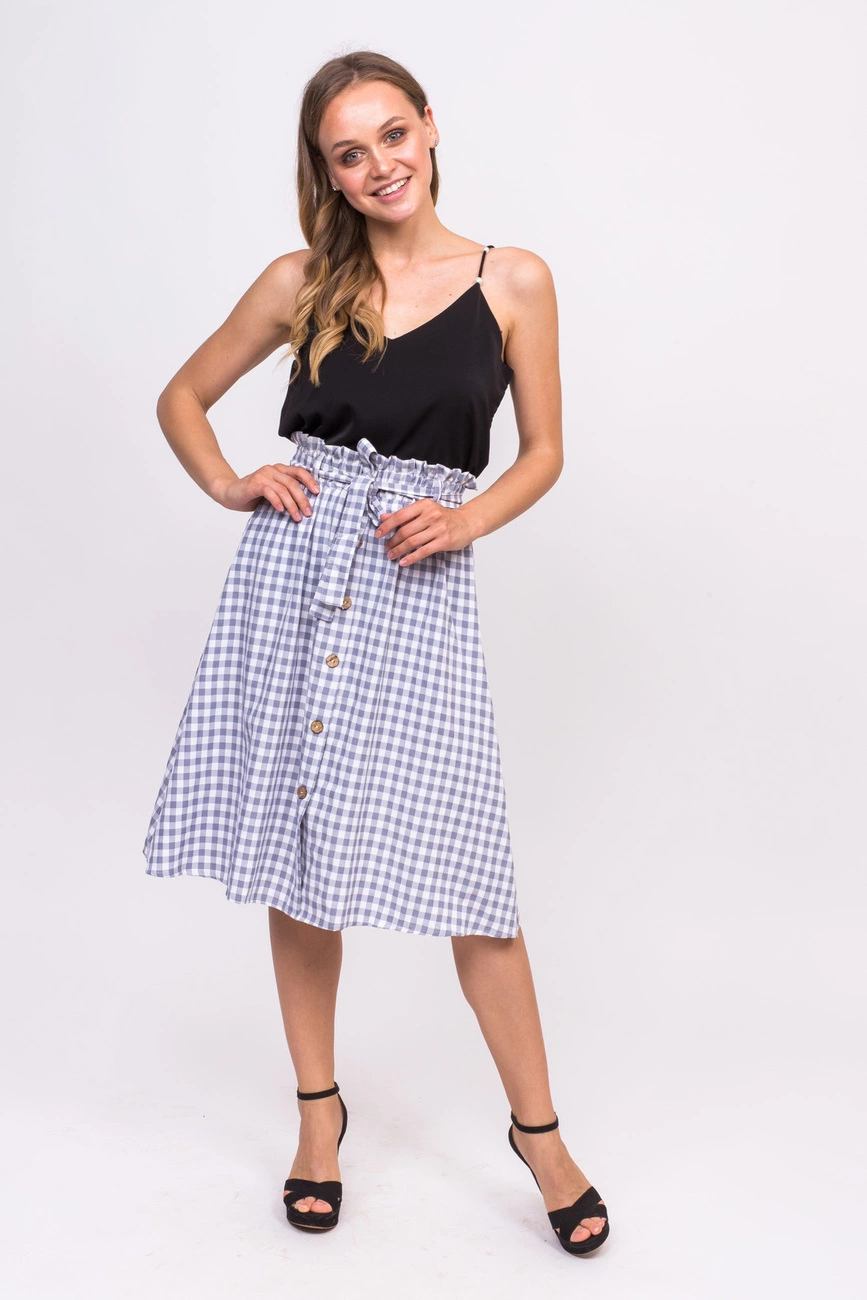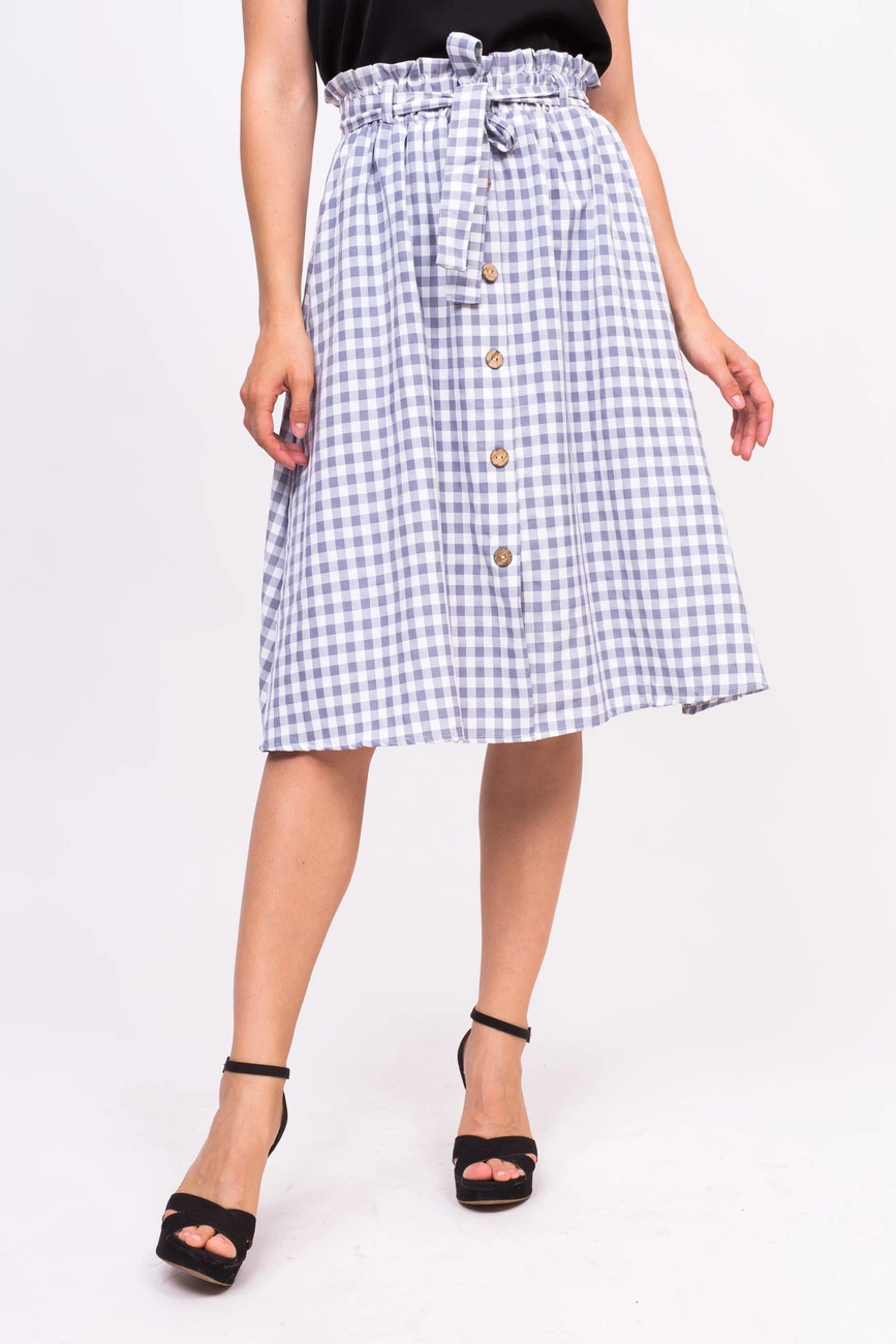 LUREX Клетчатая юбка с пояском - серый цвет, S