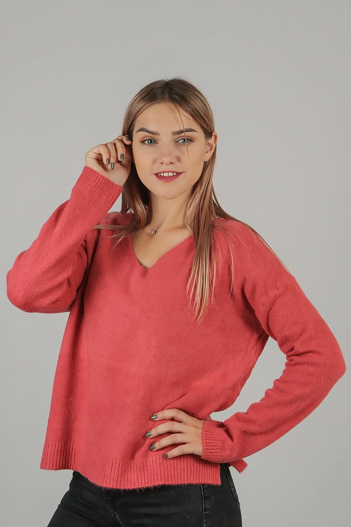 LUREX Кофта с V-образным вырезом - коралловый цвет, L