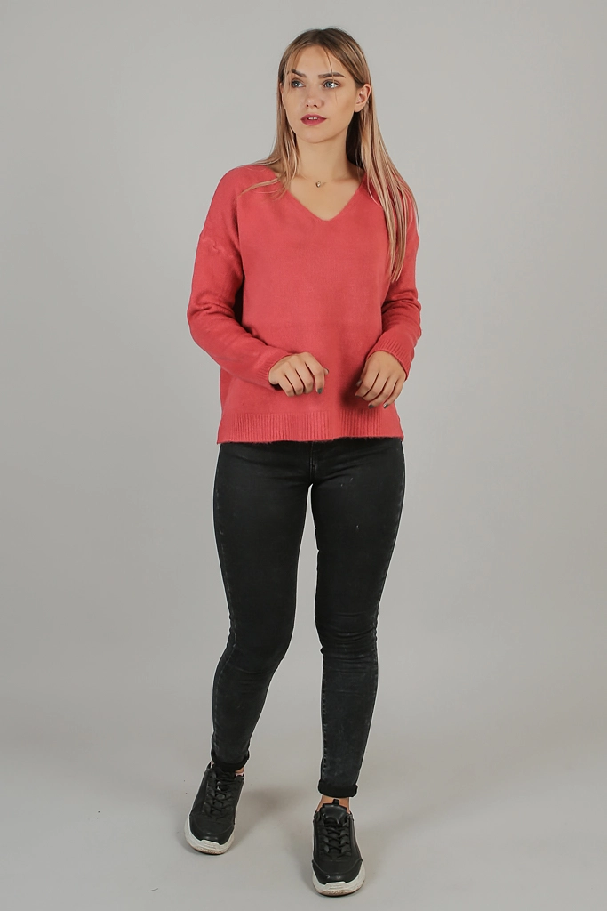 LUREX Кофта с V-образным вырезом - коралловый цвет, S