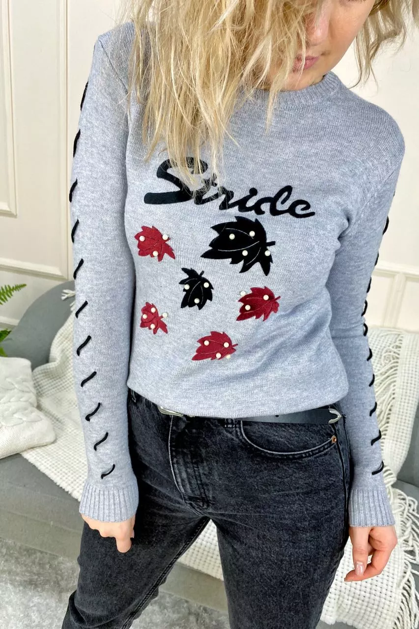 Практичная и стильная кофта с принтом листики –