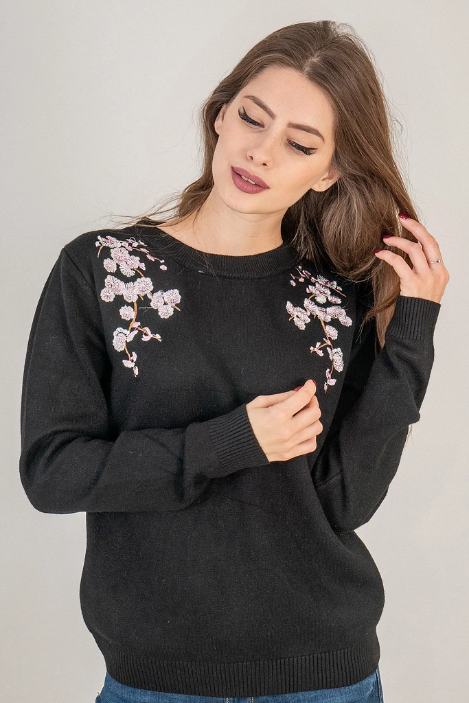 LUREX Кофта с цветочной вышивкой на воротнике - черный цвет, S