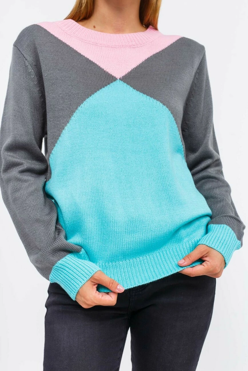 Джемпер свободного кроя с контрастными крупными фигурами в модной