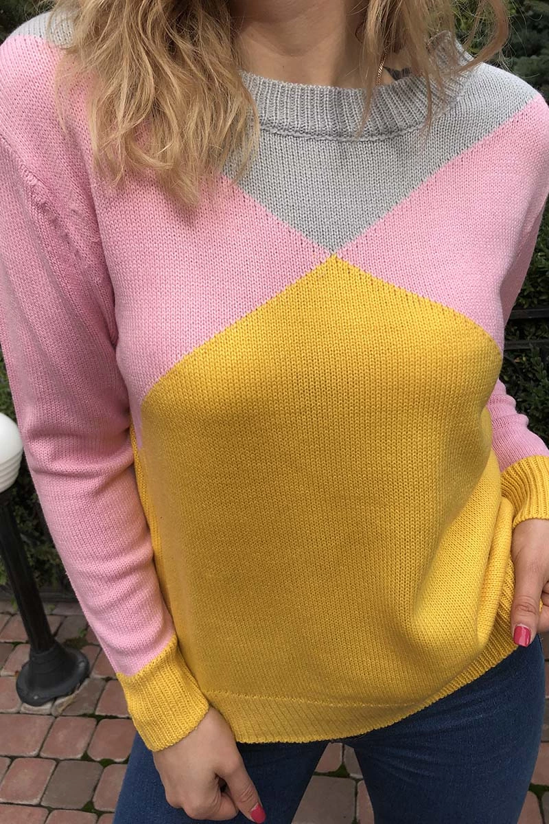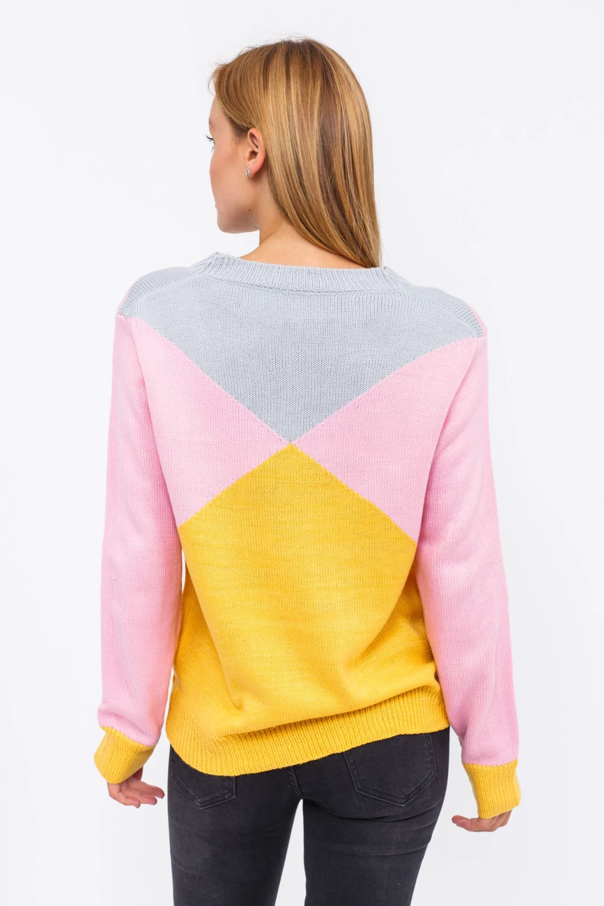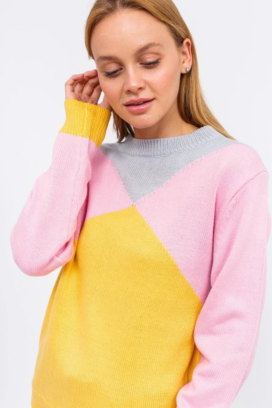 Джемпер свободного кроя с контрастными крупными фигурами в модной