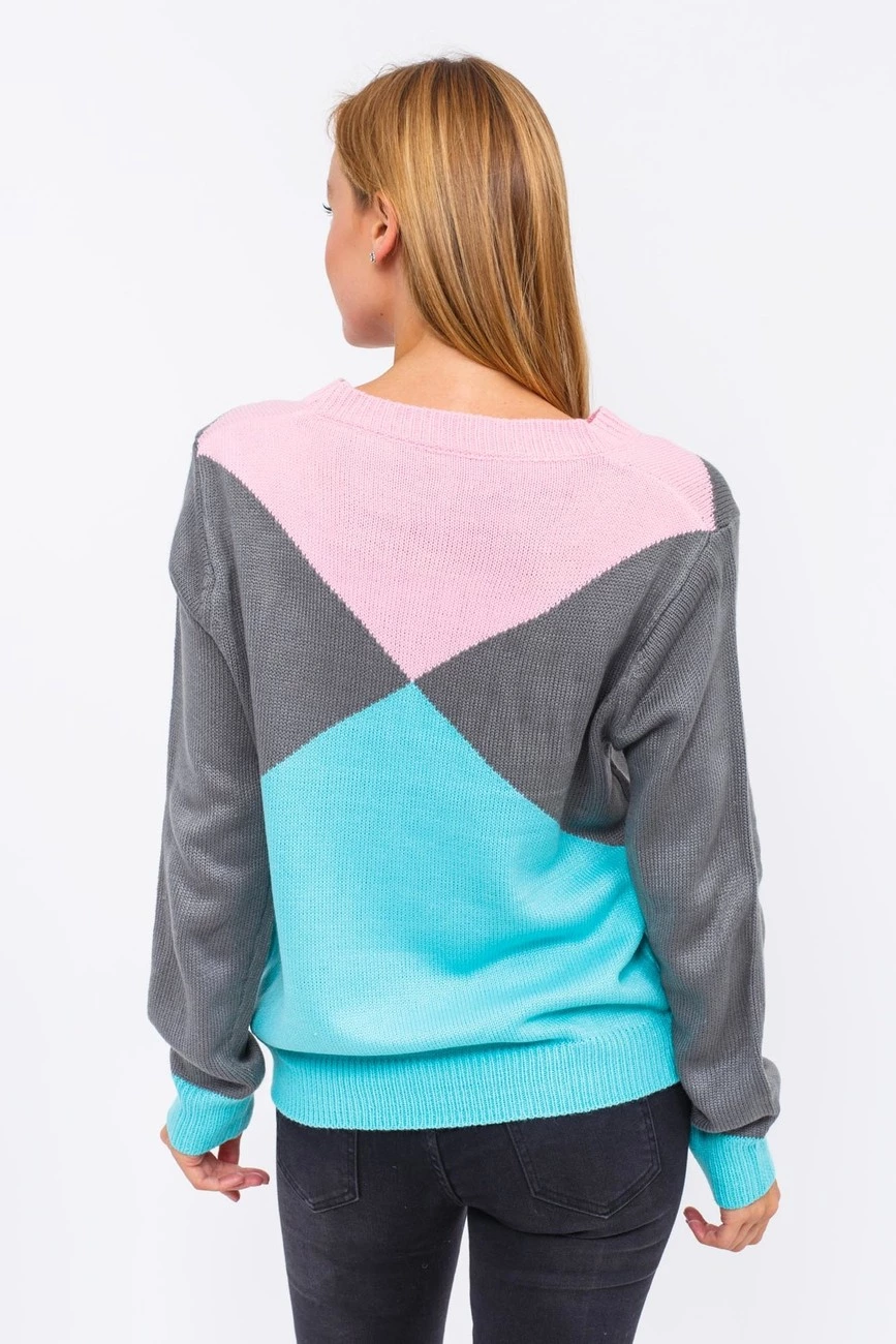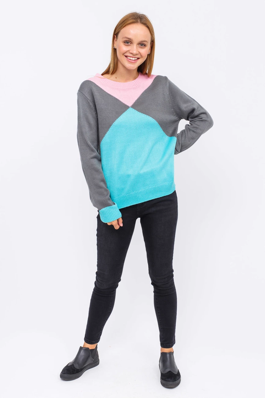 Джемпер свободного кроя с контрастными крупными фигурами в модной