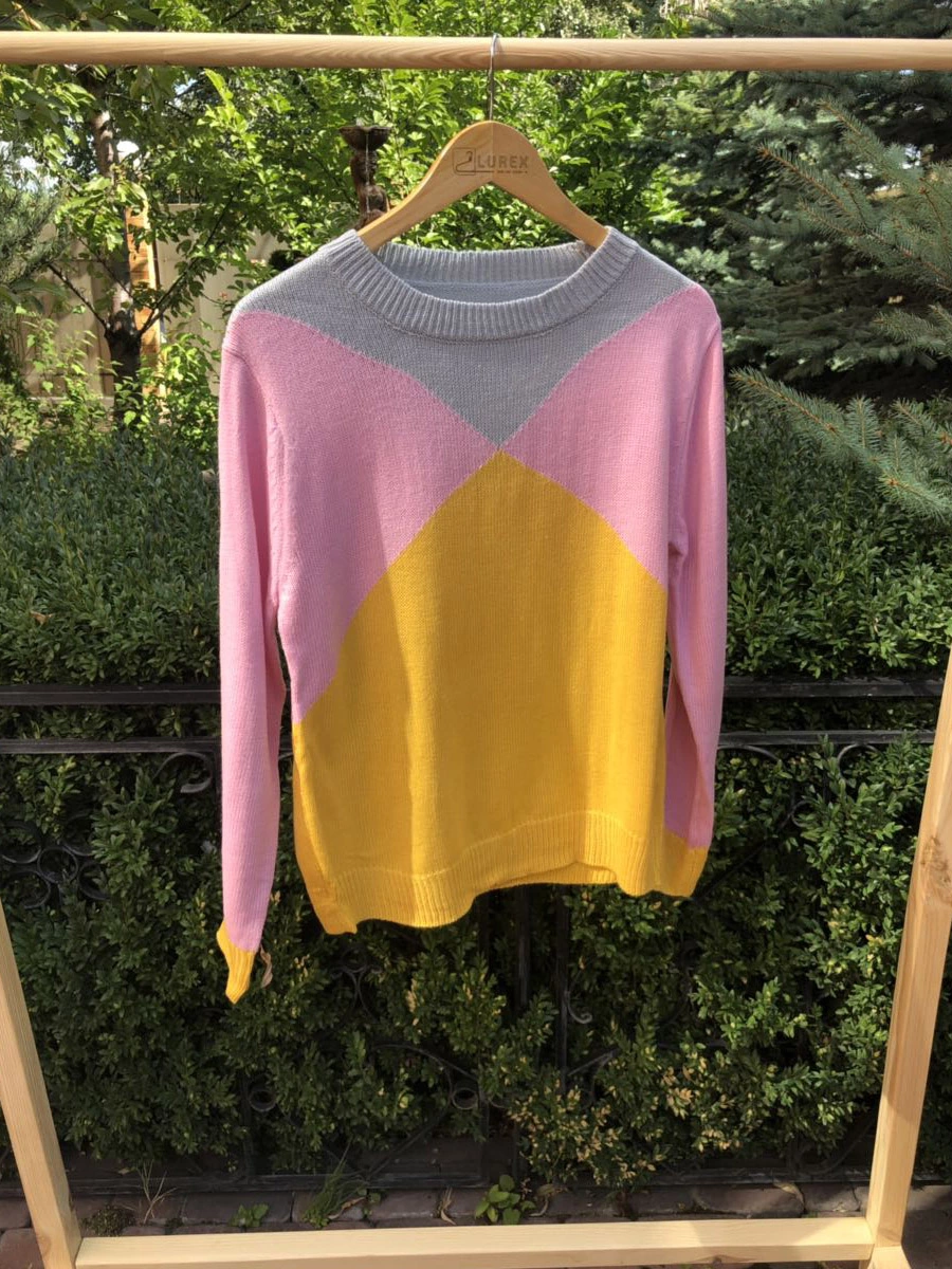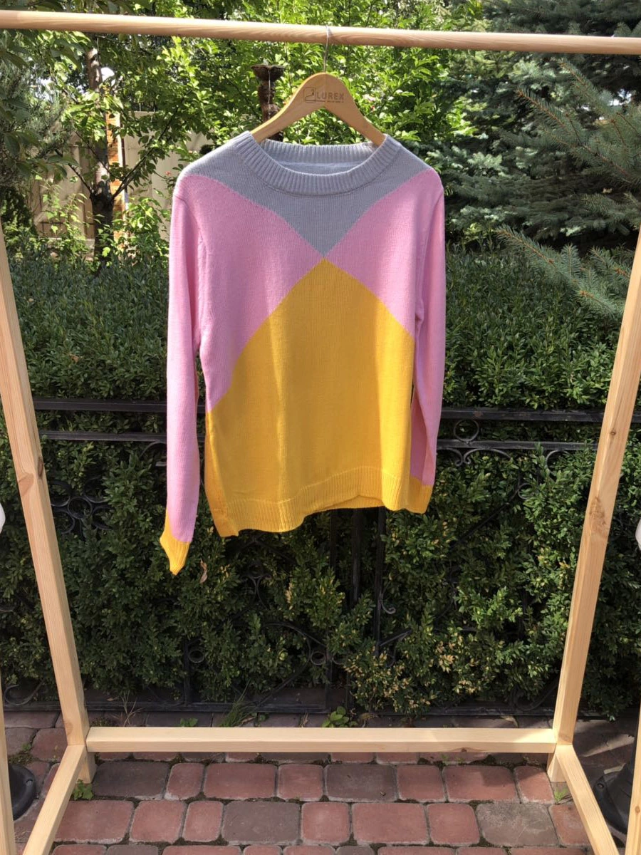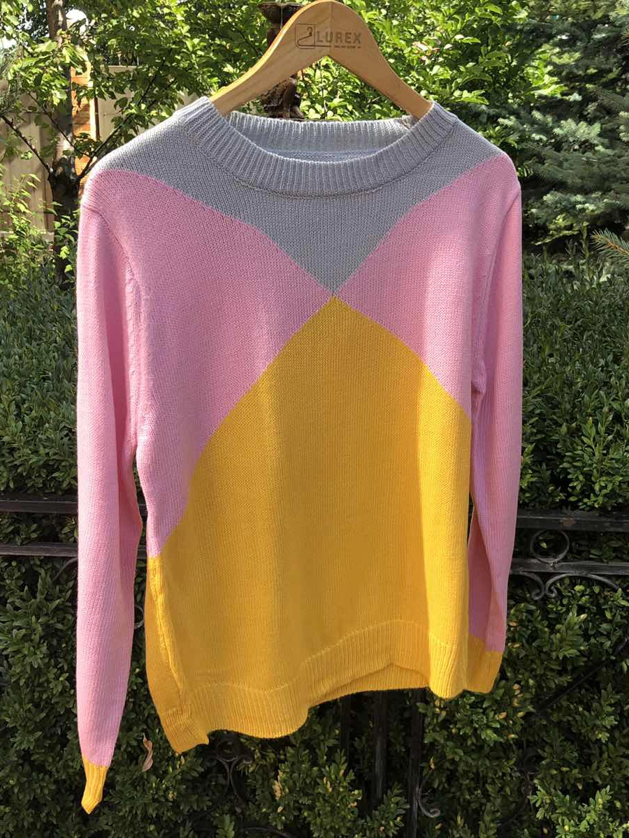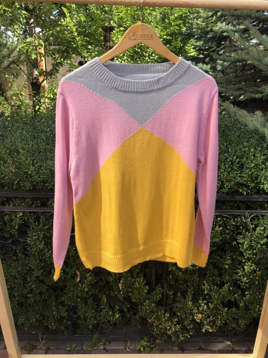 Джемпер свободного кроя с контрастными крупными фигурами в модной