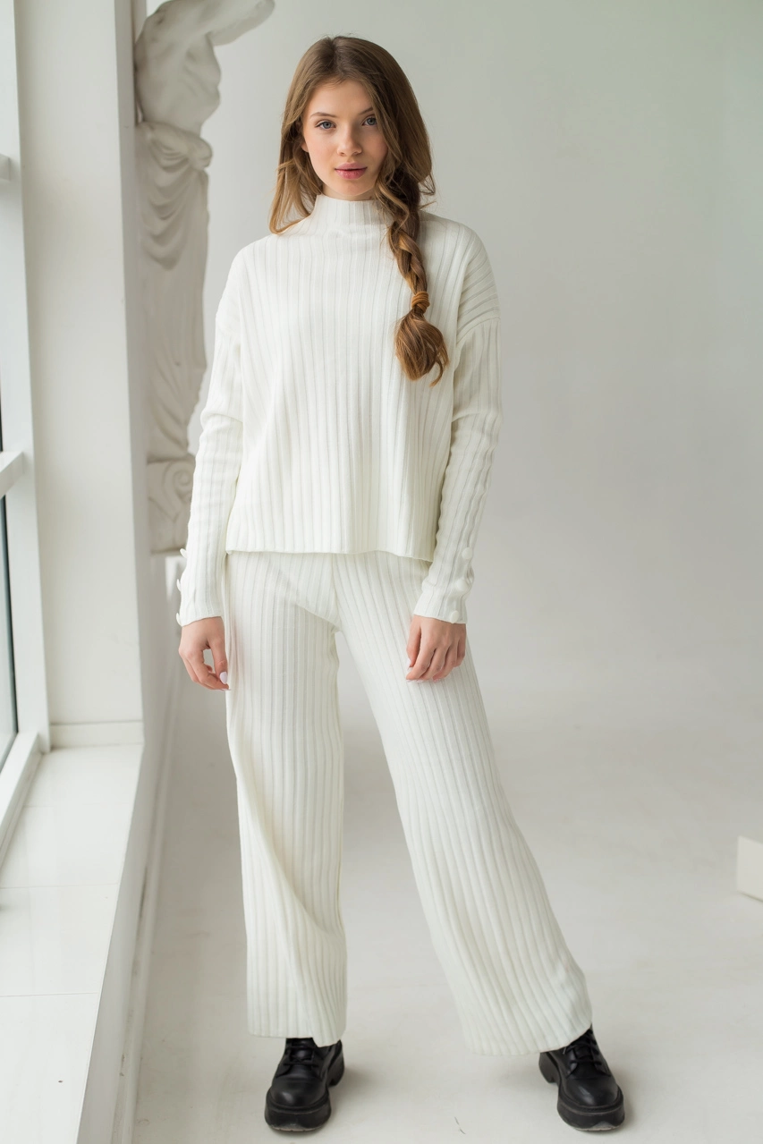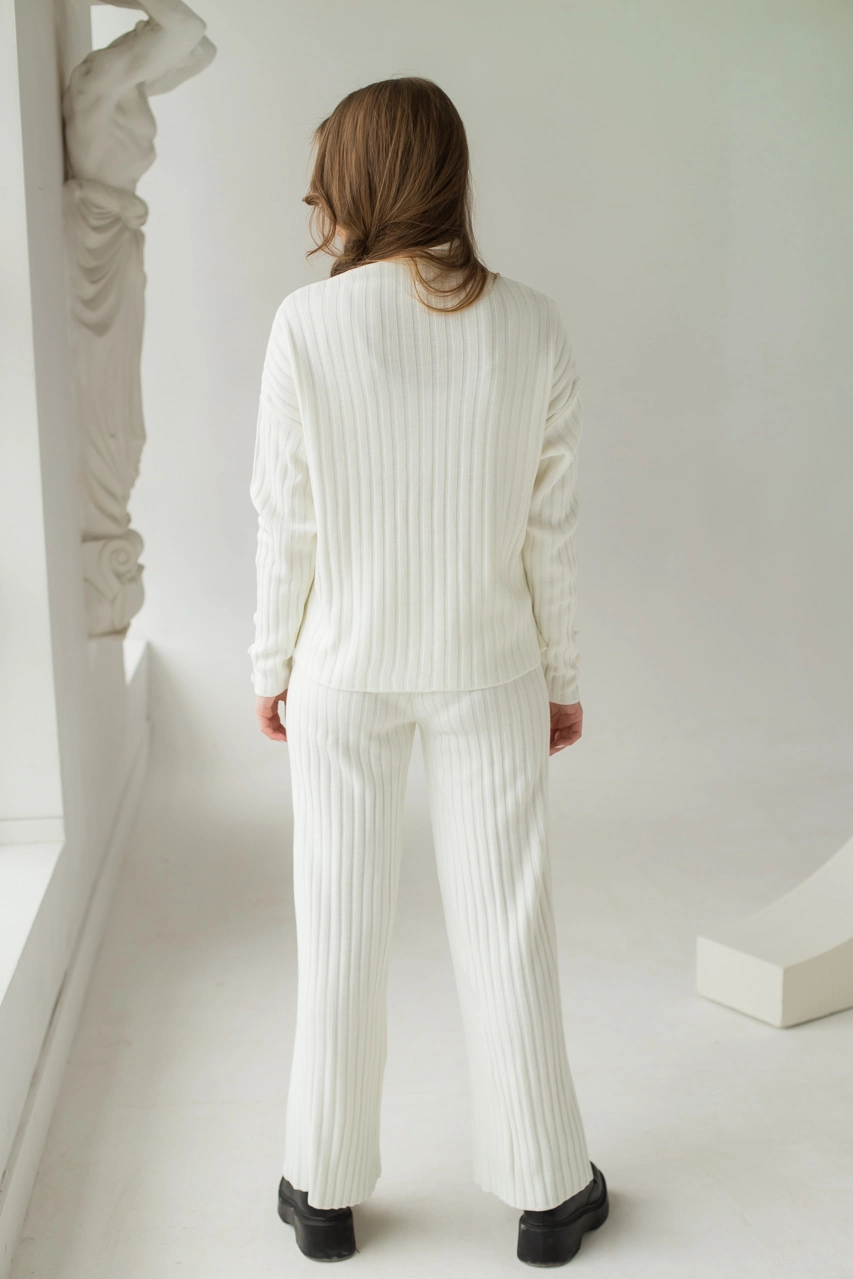Свободный костюм с оригинальной вязкой "лапша" визуально удлиняет