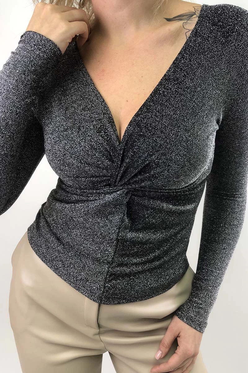 изготовлена из эластичного трикотажа с добавлением люрекса лицевой