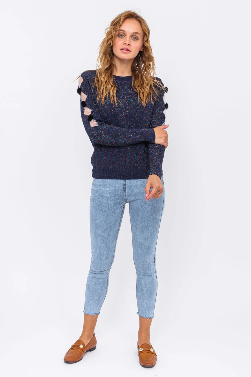 LUREX Стильный джемпер с люрекса оригинальный рукав - синий цвет, S