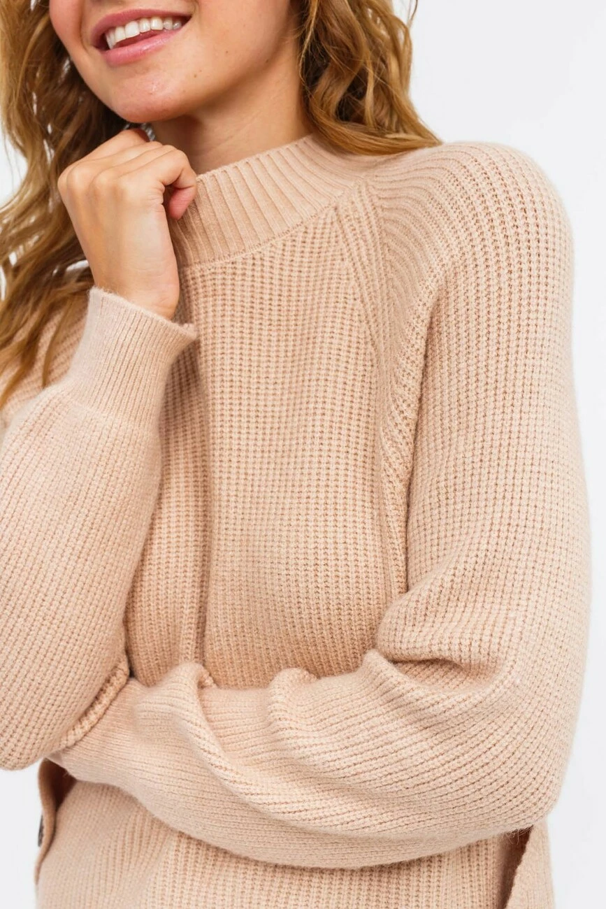 Мягкий стильный регланчик необходимая вещи для прохладных дней. Его изюминкой являются боковые разрезы, украшенные декоративными пуговицами.