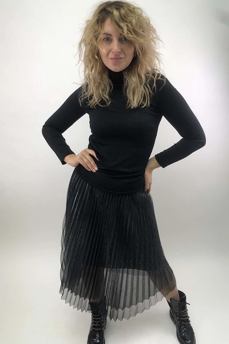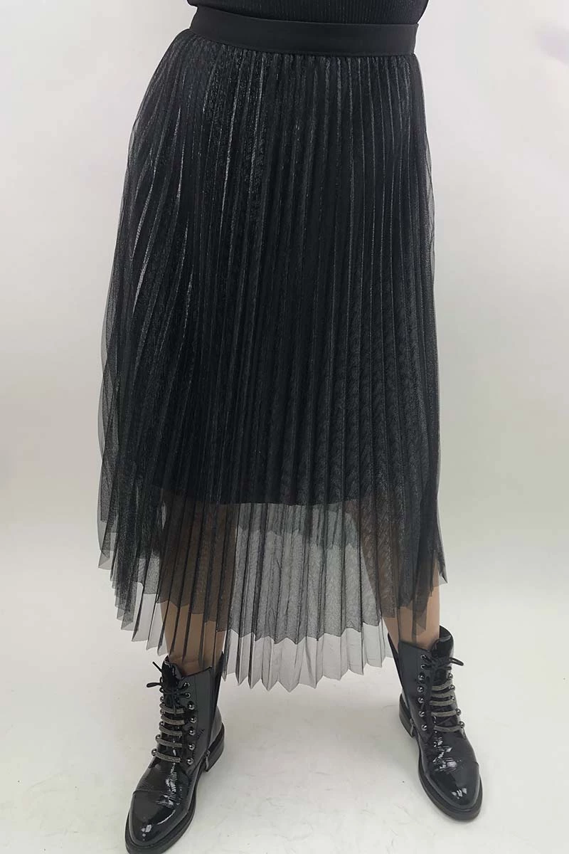 LUREX Трехслойная юбка плиссе из фатина люрекс - черный цвет, S
