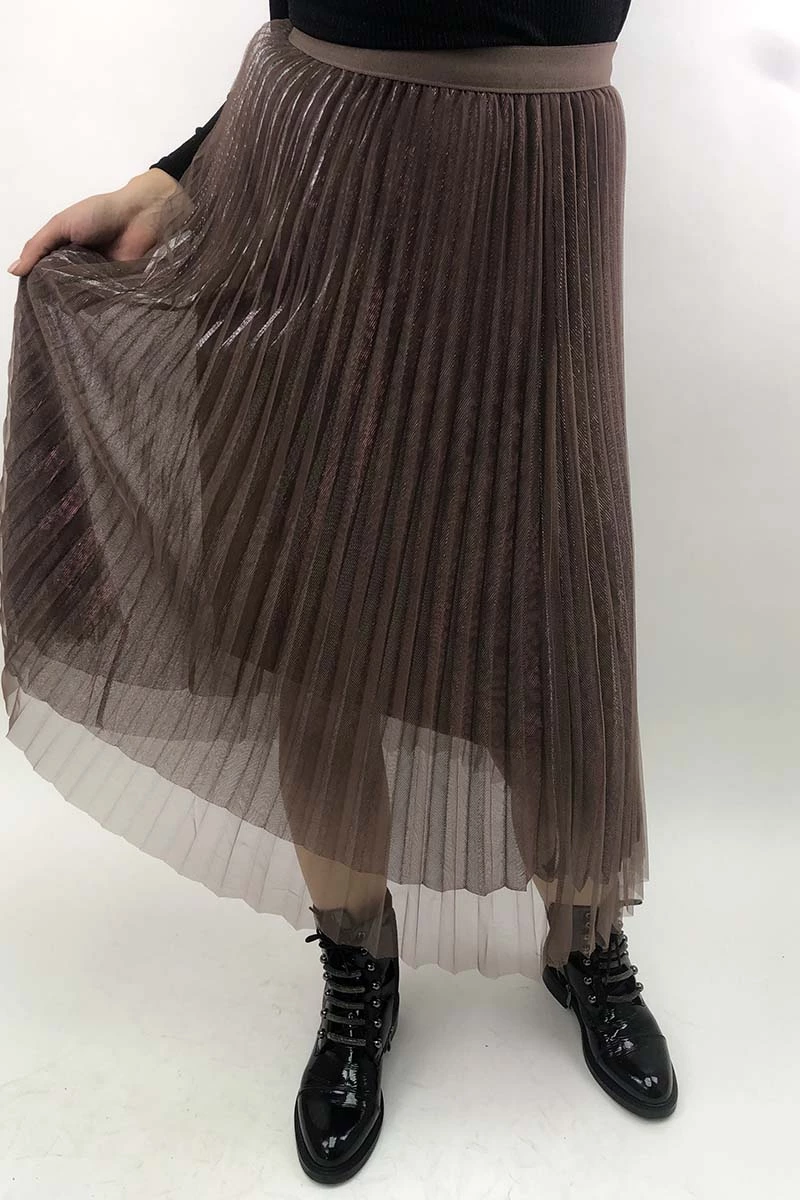 LUREX Трехслойная юбка плиссе из фатина люрекс - коричневый цвет, M