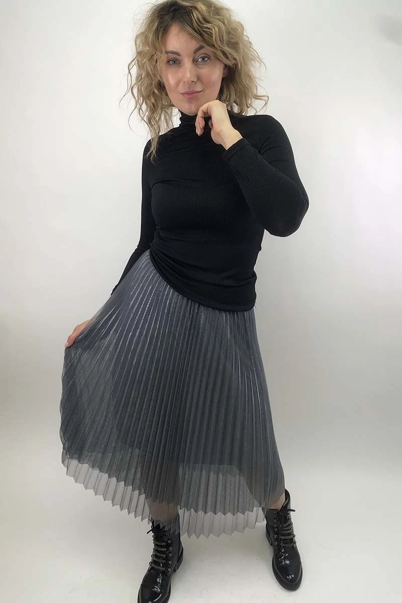 LUREX Трехслойная юбка плиссе из фатина люрекс - серый цвет, M