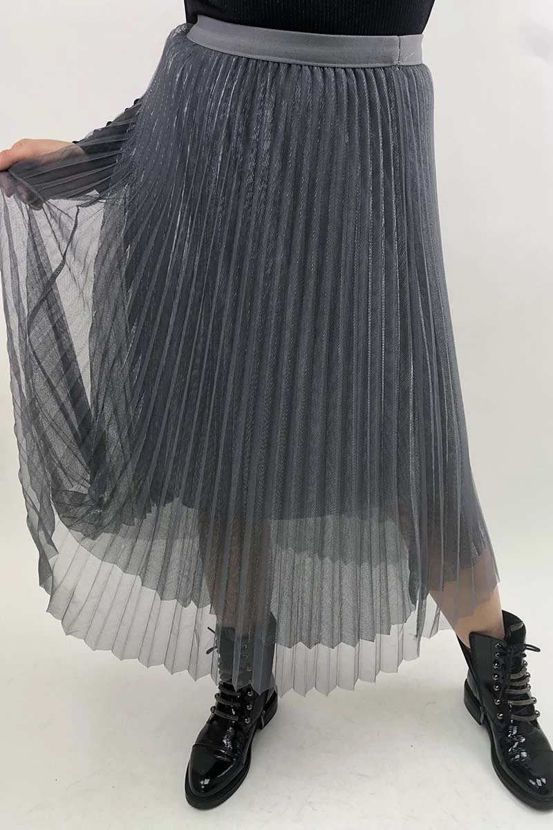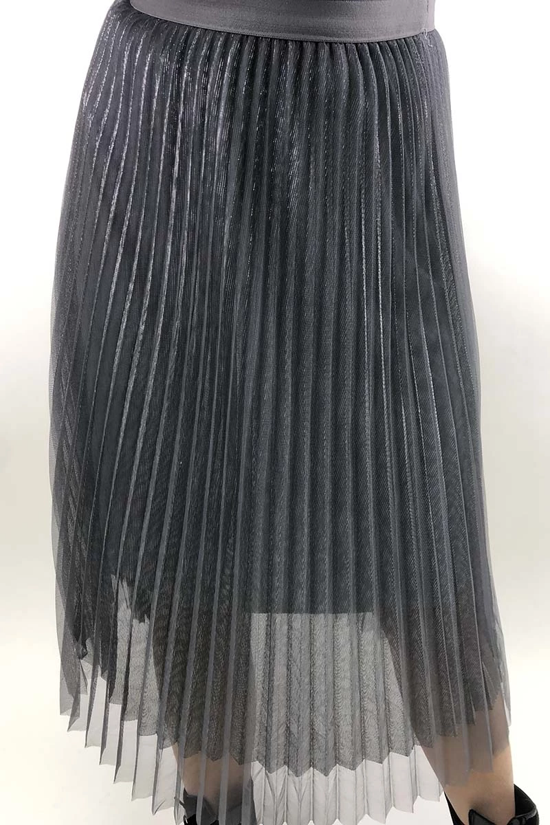LUREX Трехслойная юбка плиссе из фатина люрекс - серый цвет, S