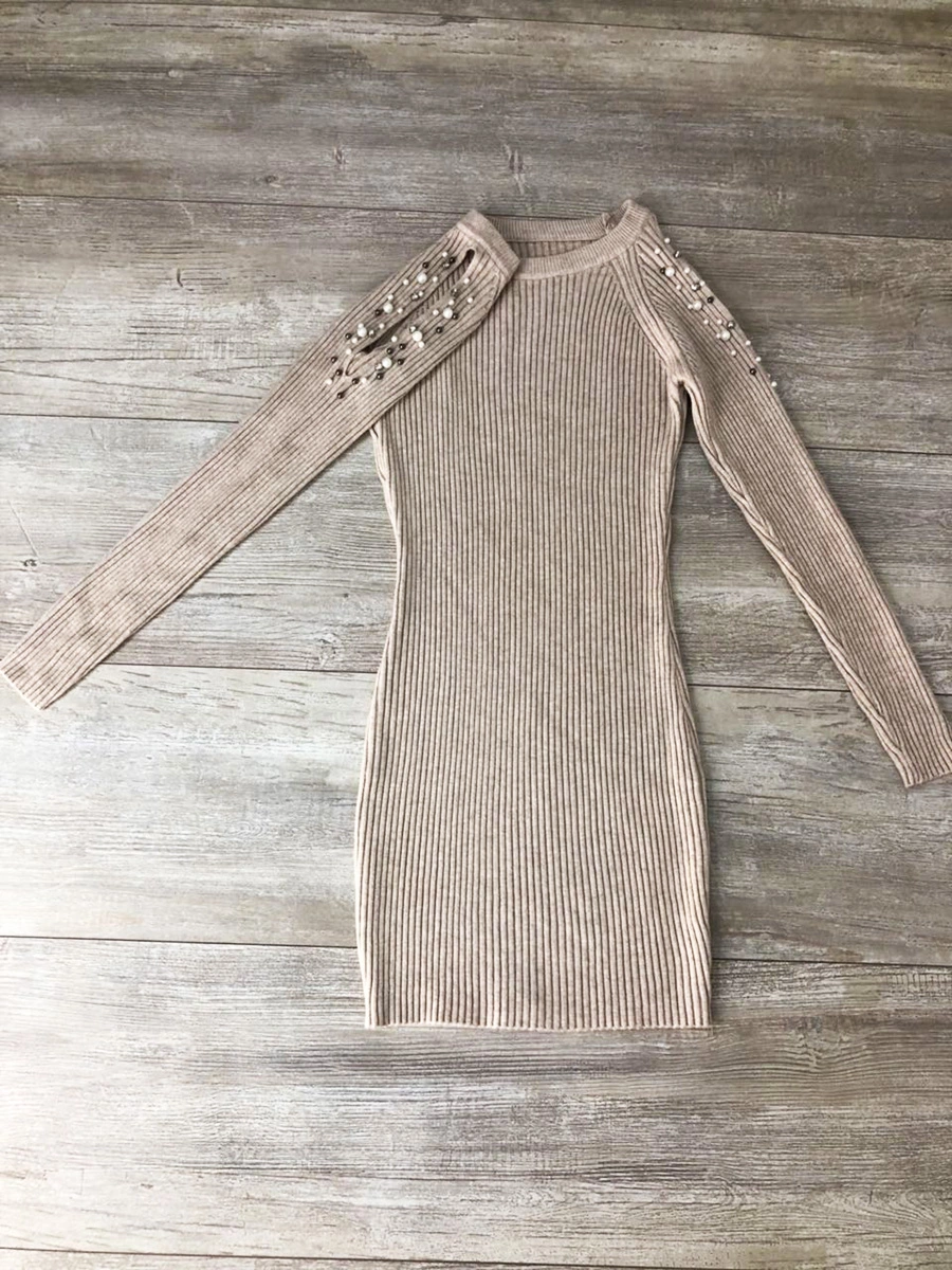 Теплая туника с оригинальным рукавом. Рукава с открытыми плечами украшены бусинками и бисером.