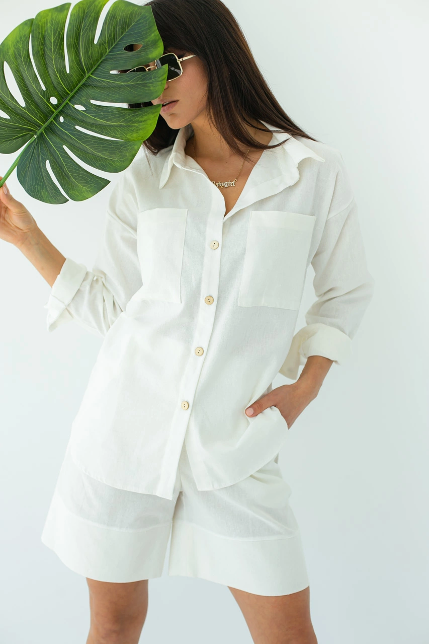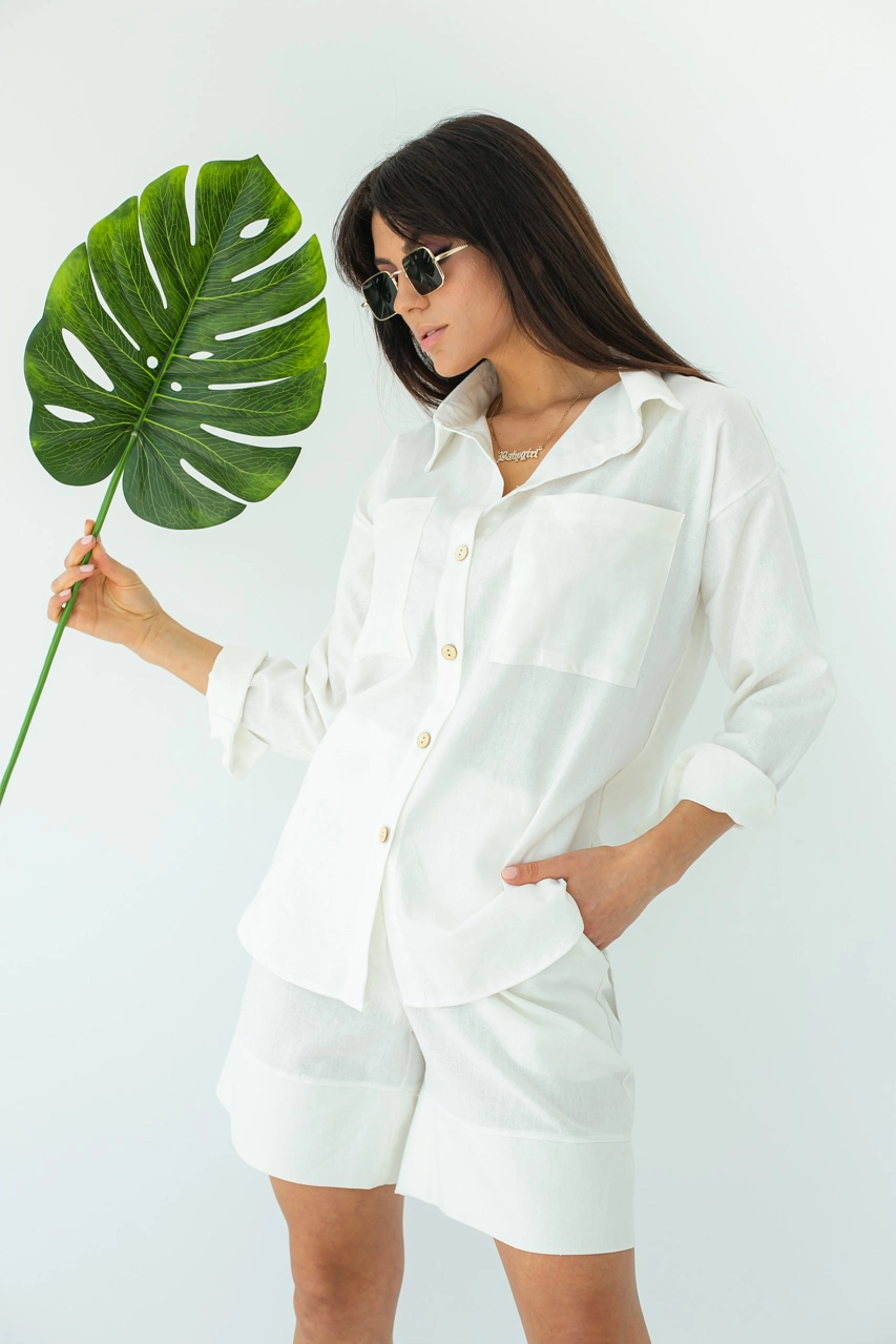 себя. Свободные шорты-бермуды имеют вместительные прорезные карманы