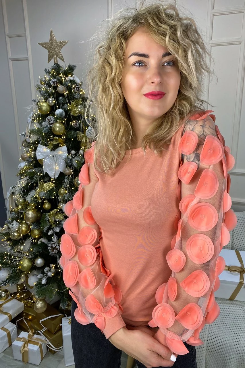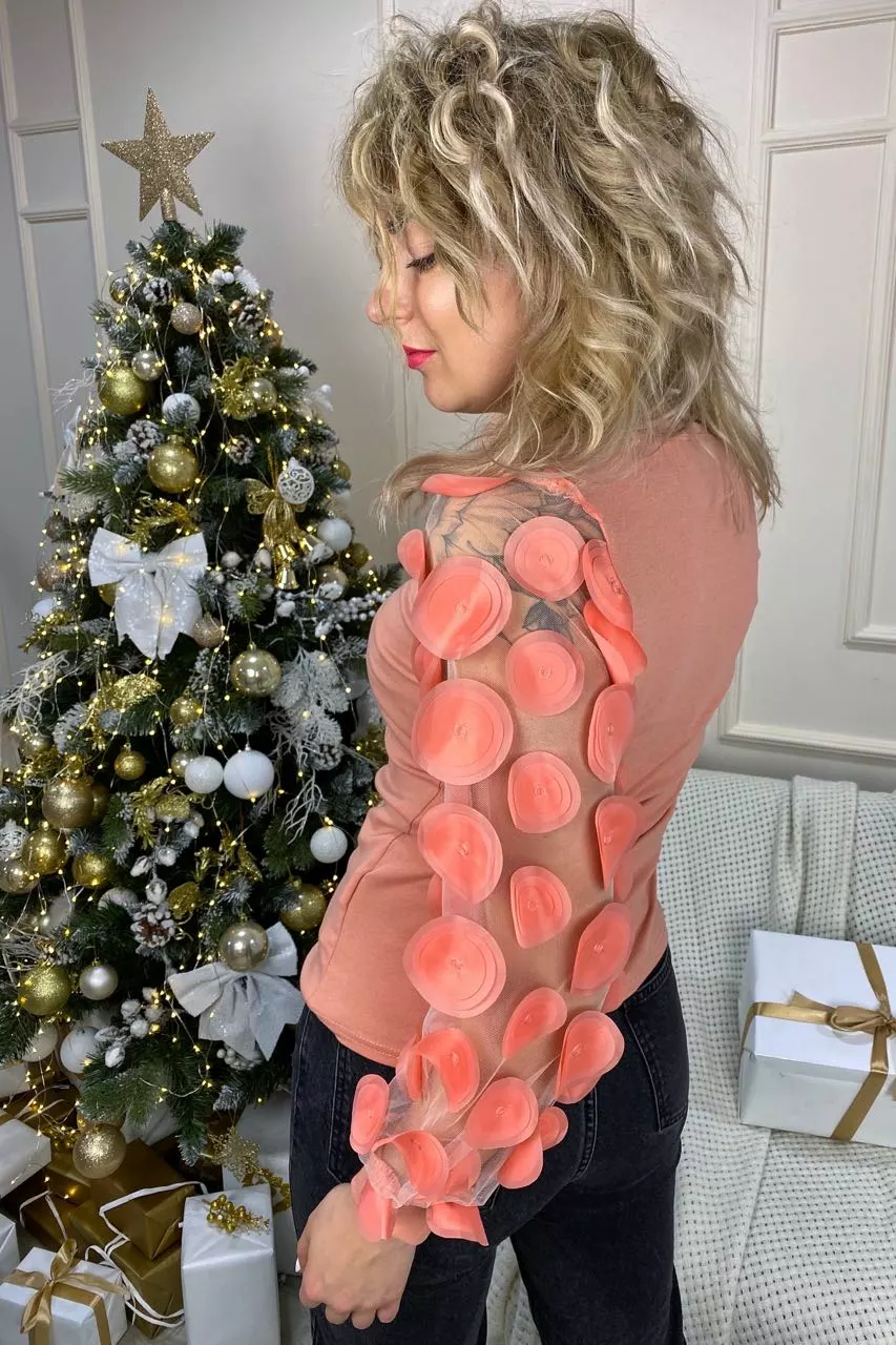M.B.21 Трикотажный джемпер с нарядными рукавами - пудра цвет, S/M
