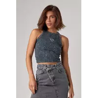 Майка в рубчик тай-дай с вышитым сердцем - темно-серый цвет, M (есть размеры)