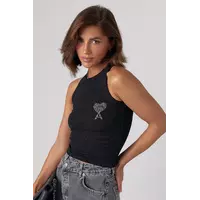 Майка в рубчик украшена логотипом Амі Paris из термостраз - черный цвет, M (есть размеры)