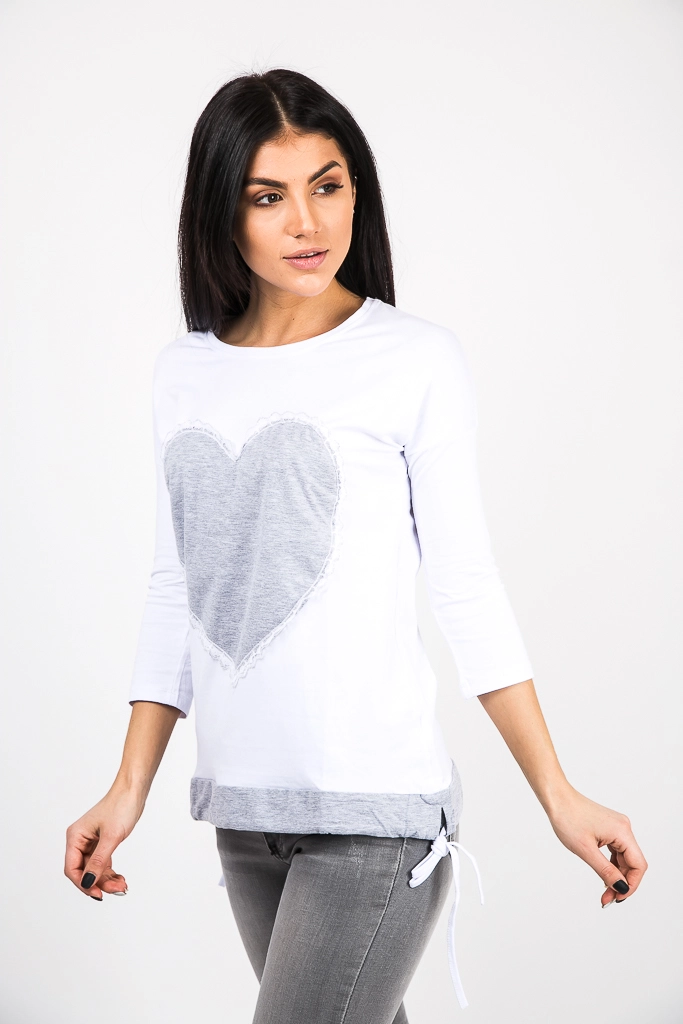 Горловина круглая, на передней полочке большая тканьевая нашивка