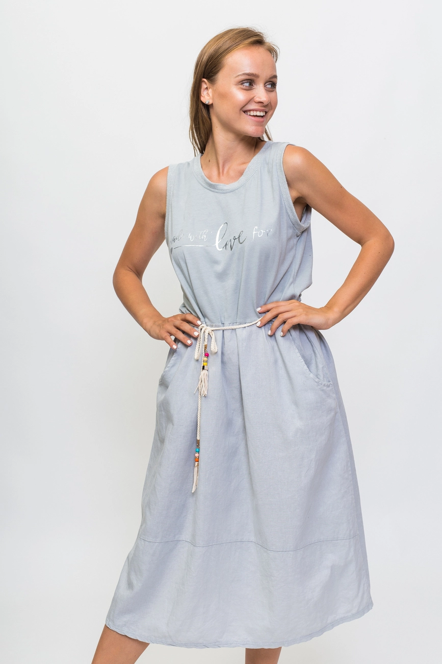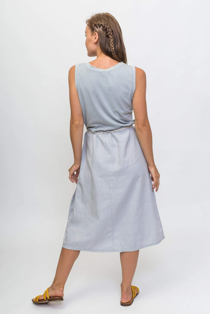 Стильное летнее платье для жарких дней. Верх платья натуральный хлопок, низ изделия юбка из натурального льна.