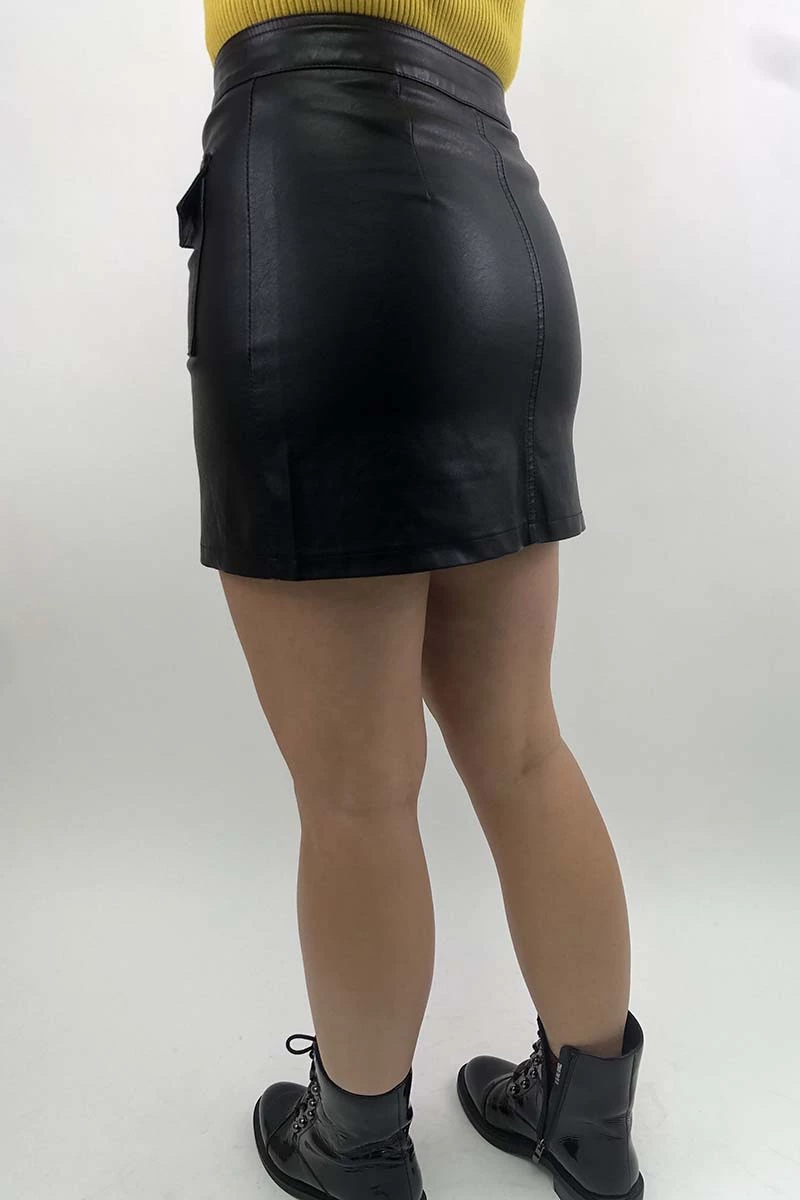 Кожаная мини-юбка на металлических пуговицах/заклепках изготовлена
