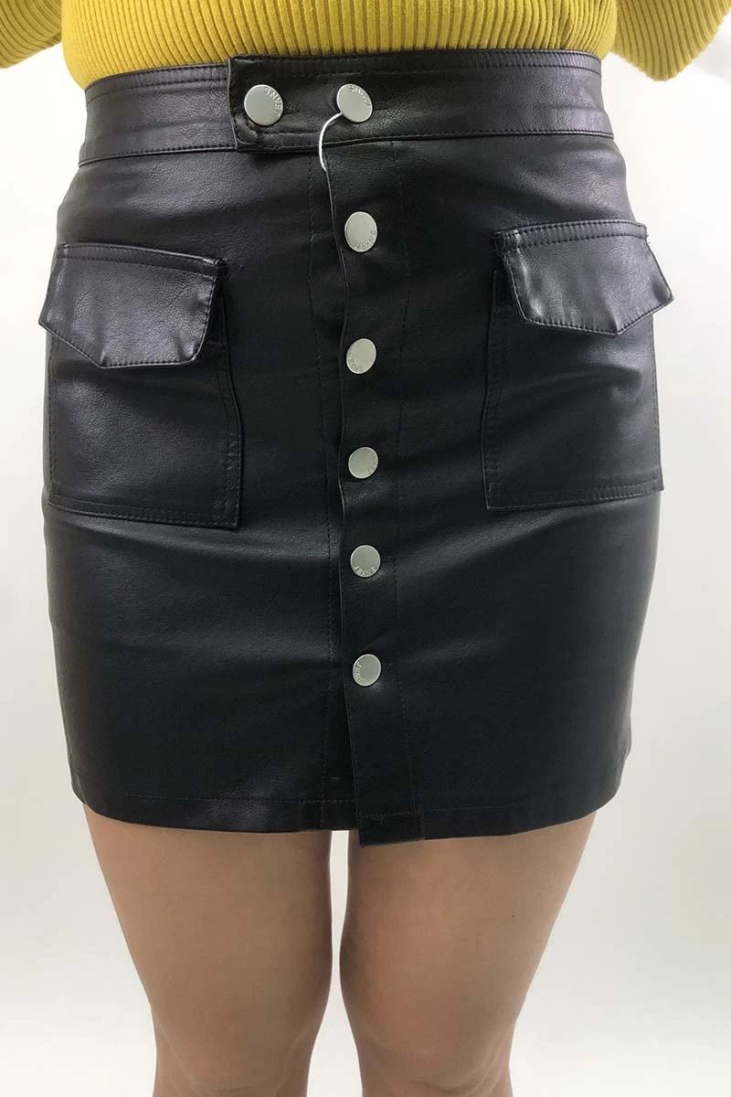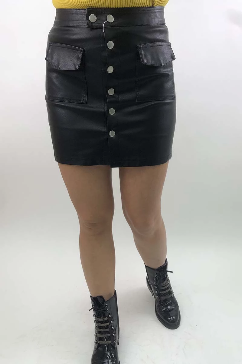 Na Ke Мини-юбка на пуговицах и с карманами-конвертами из экокожи - черный цвет, S