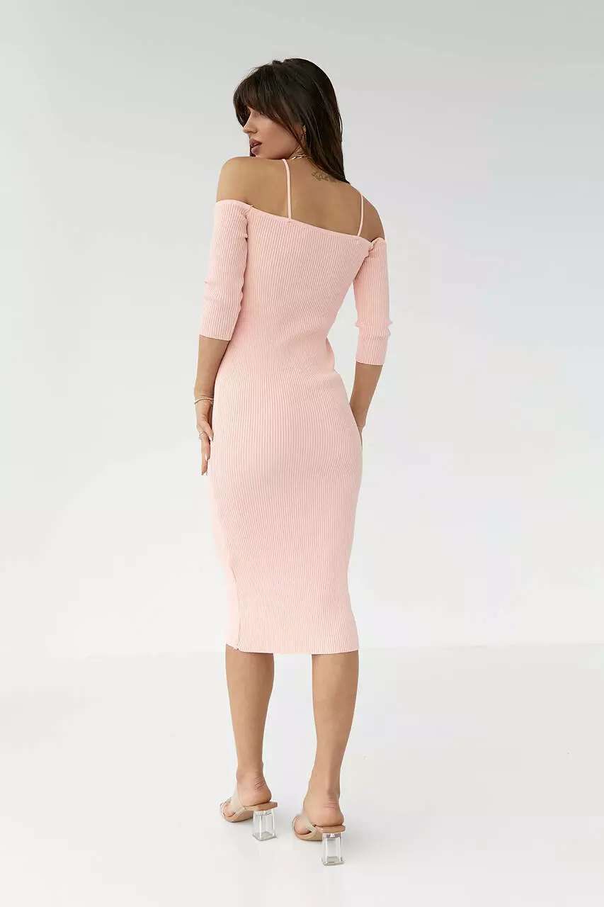 Облегающее платье с открытыми плечами - пудра цвет, L (есть размеры)