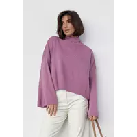 Однотонная кофта с высокой горловиной и расширенными рукавами - лавандовый цвет, L (есть размеры)