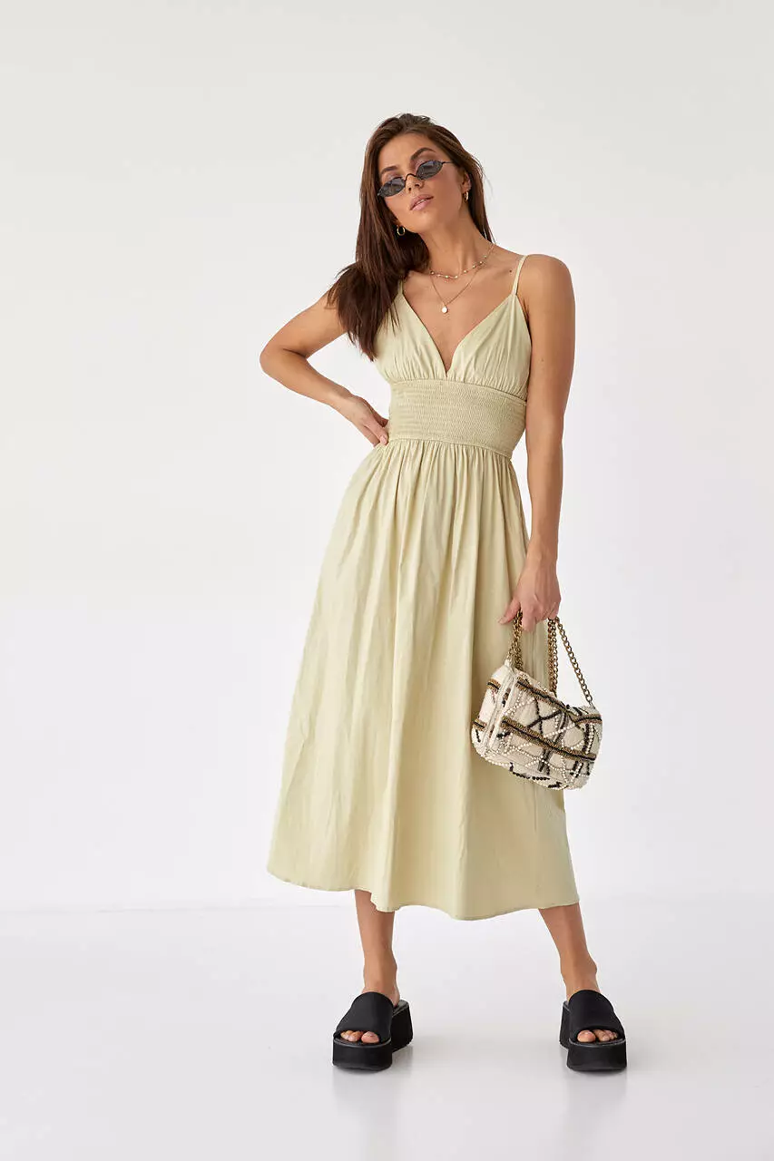бретелях с пышной юбкой и широкой резинкой на талии.