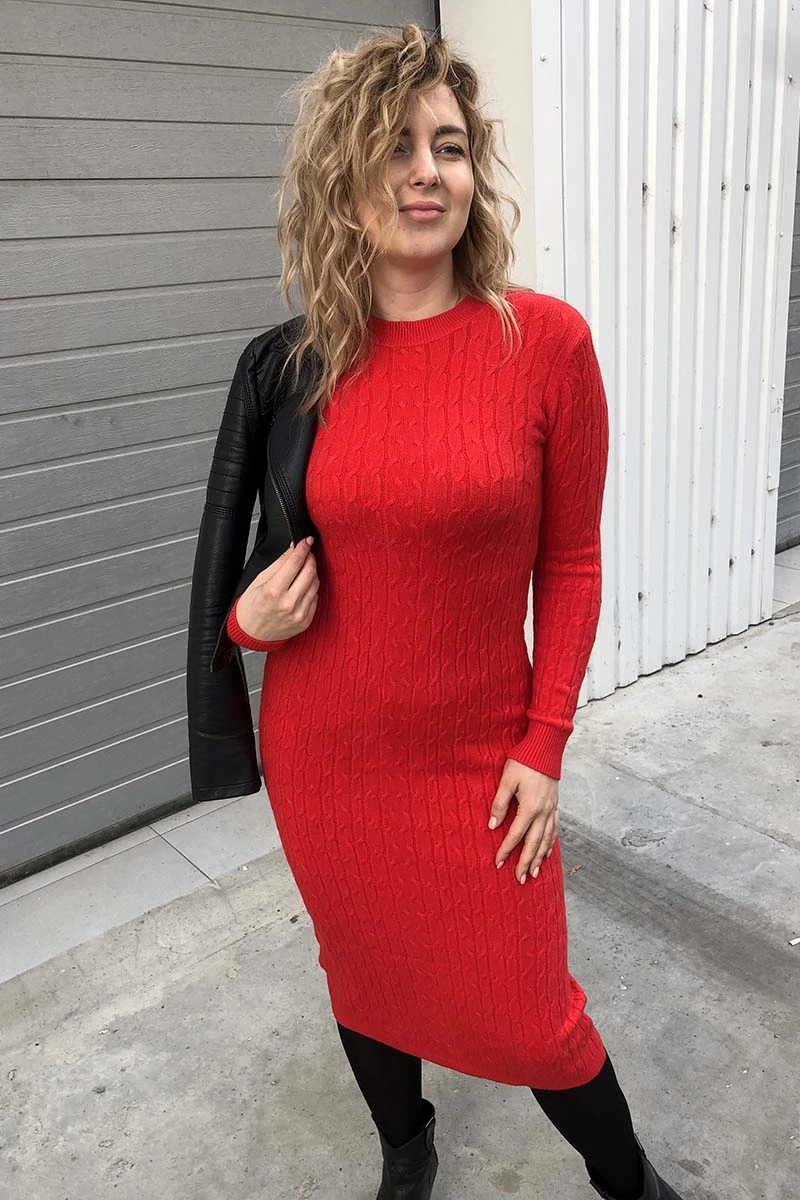 P-M Длинное трикотажное платье в косичку - красный цвет, S/M