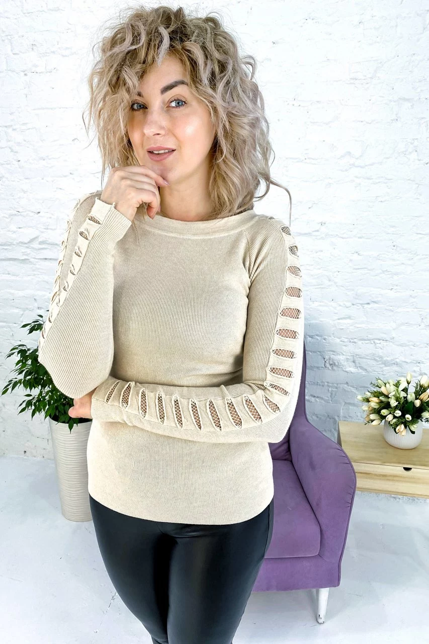 кофта с прорезями по всей длине рукавов и эластичной сеткой. Если