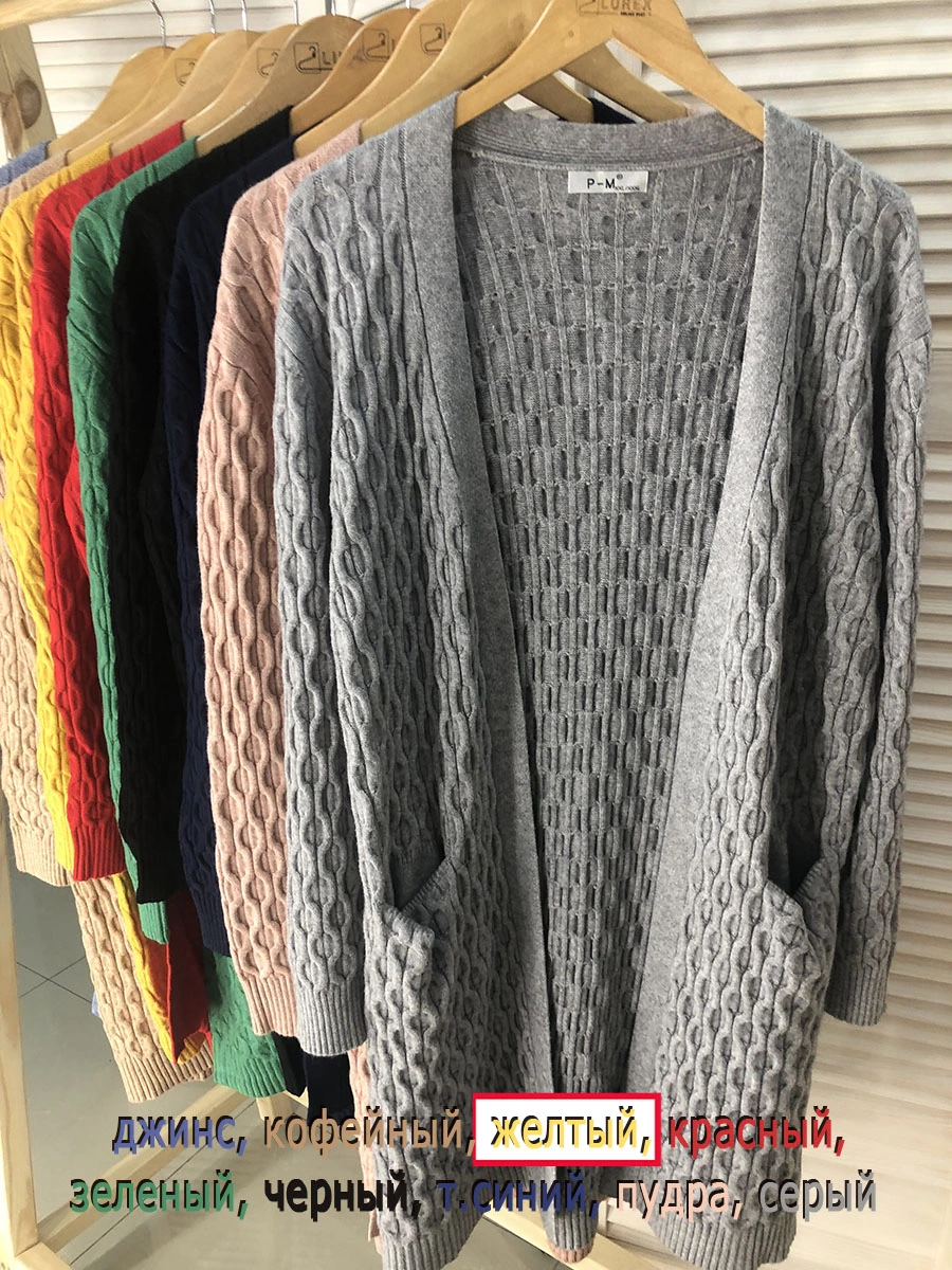 P-M Теплый кардиган мелкая коса - желтый цвет, XL/XXL