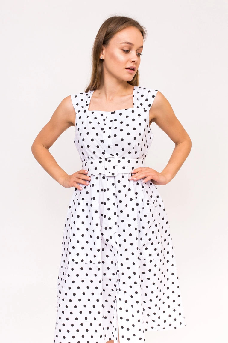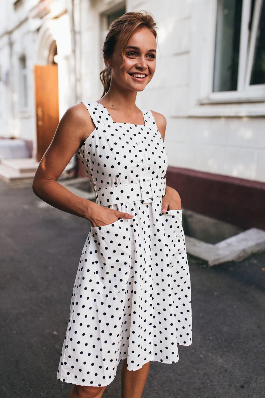 Такой милый сарафанчик must have в Вашем летнем гардеробе. Его милый гороховый принт, не оставит никого равнодушным.