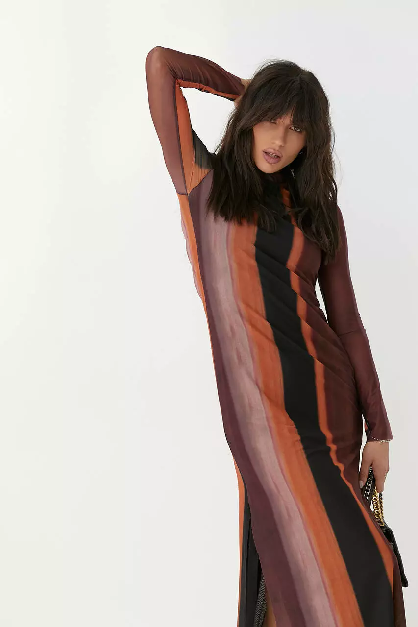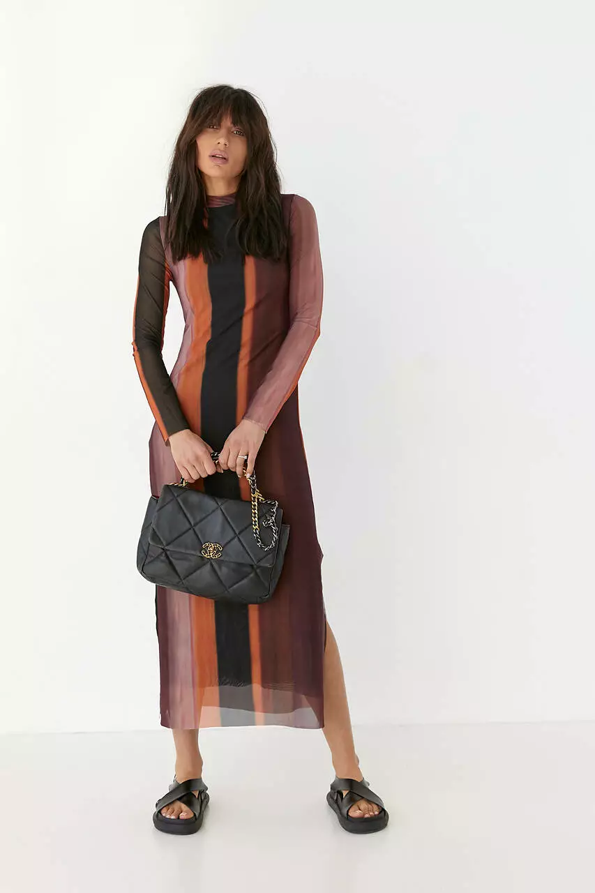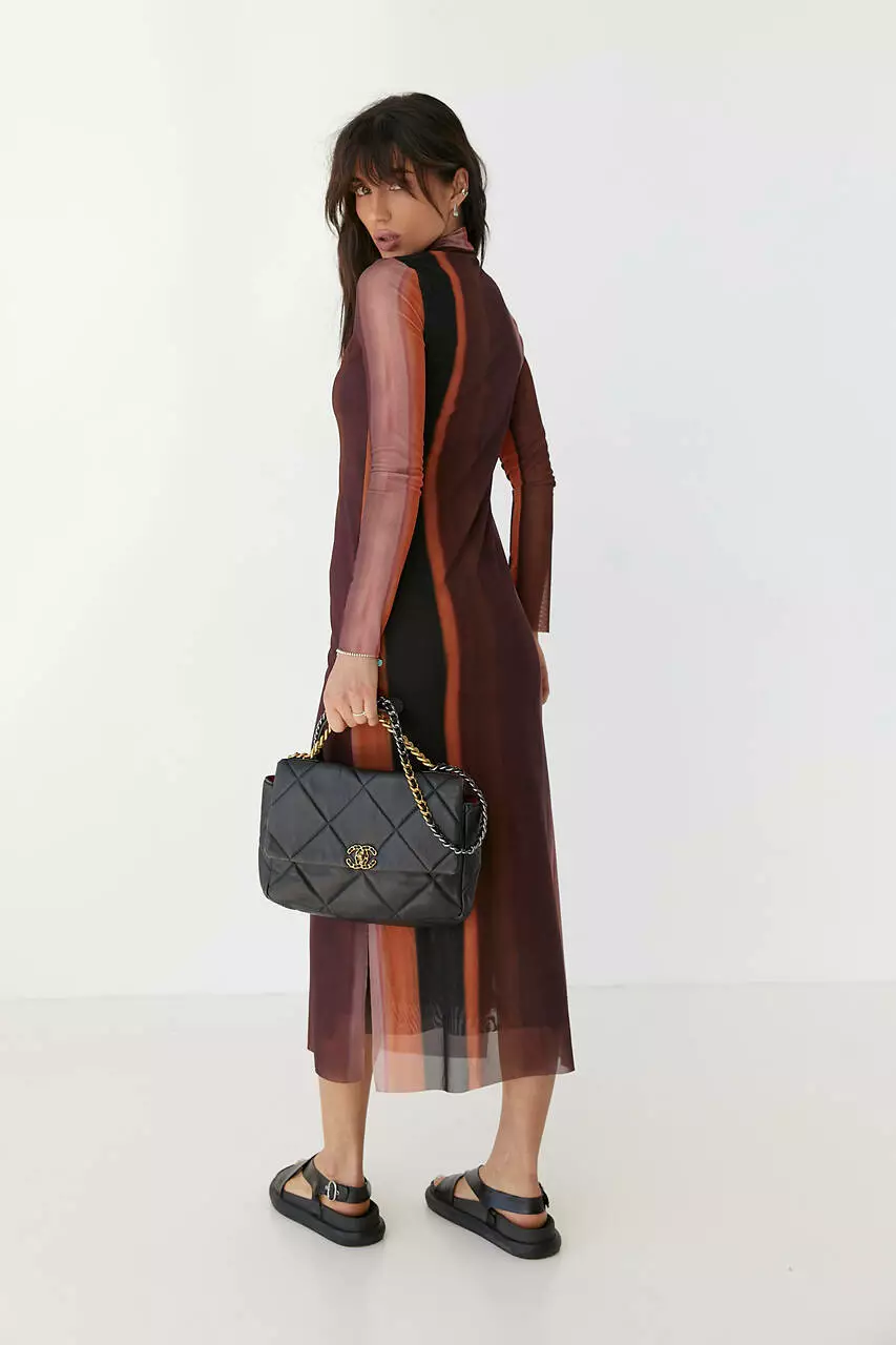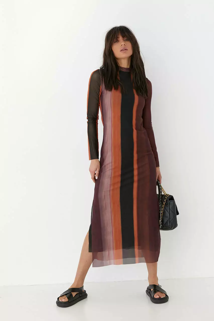 Это стильное платье так и манит к себе взгляды, завораживая легкостью и узором полупрозрачной ткани.